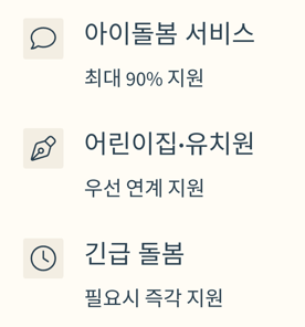 - 육아 지원금 + 보육시설 정보 + 정신건강 상담