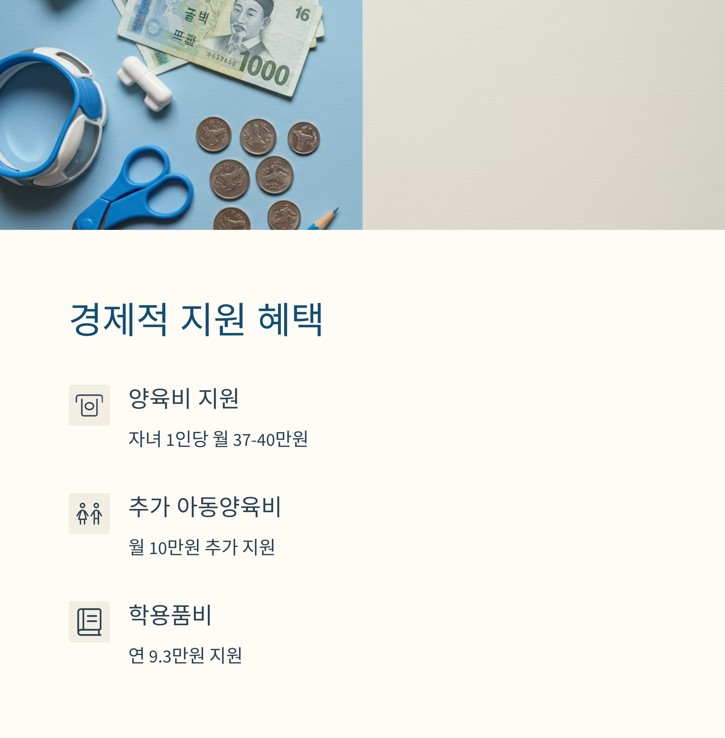 | 양육비 지원 | 월 최대 70만 원 현금 지원(자립계획 따라 차등 지급) |