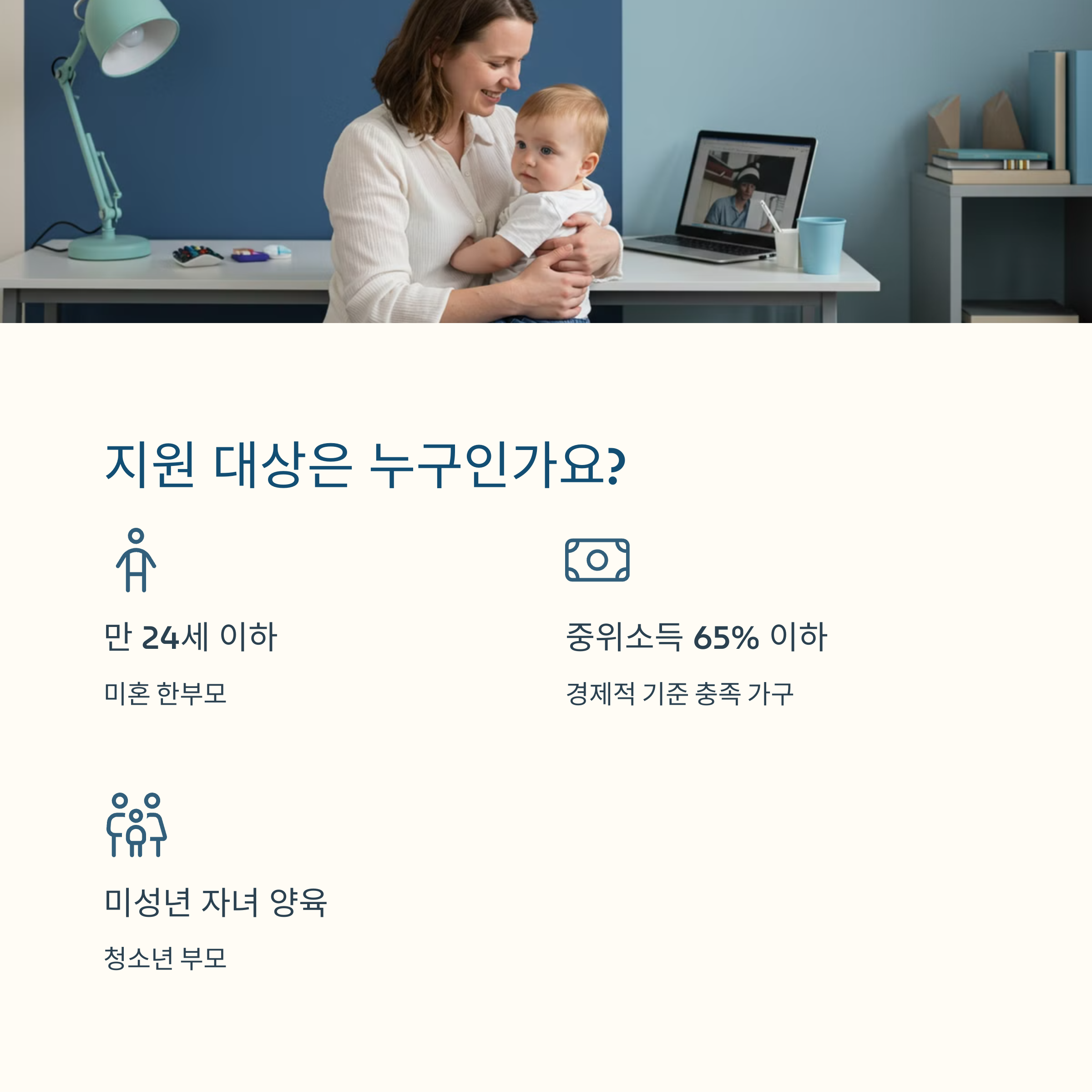 | 특례 | 특히 만 19세 미만의 미성년 미혼 부모 우선지원 |