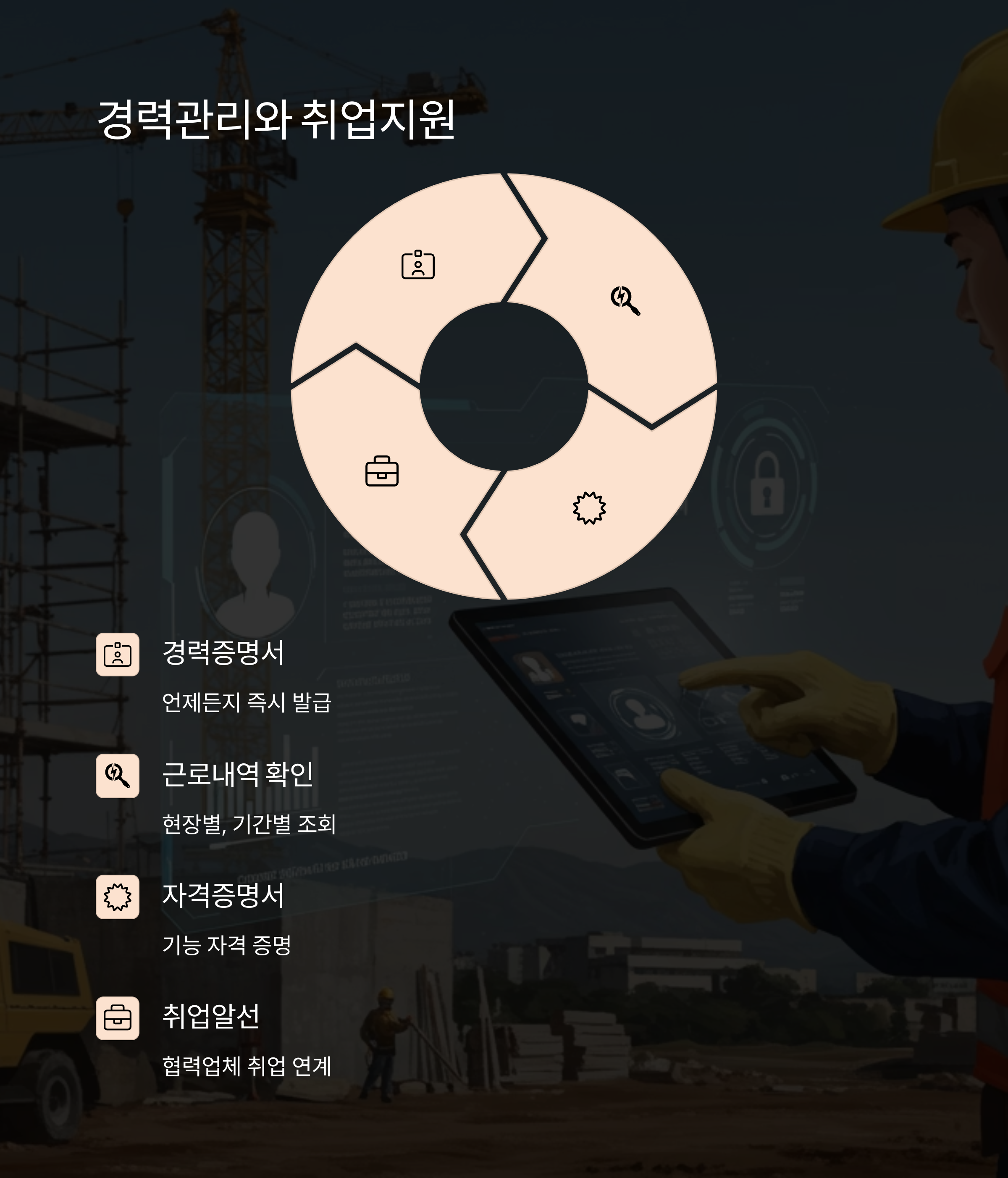 2025년부터는 블록체인 기반 경력증명 시스템이 도입되어 경력 위변조를 원천 차단하고, 건설현장 출입 시 모바일 경력증명서로 간편하게 인증할 수 있게 되었습니다.