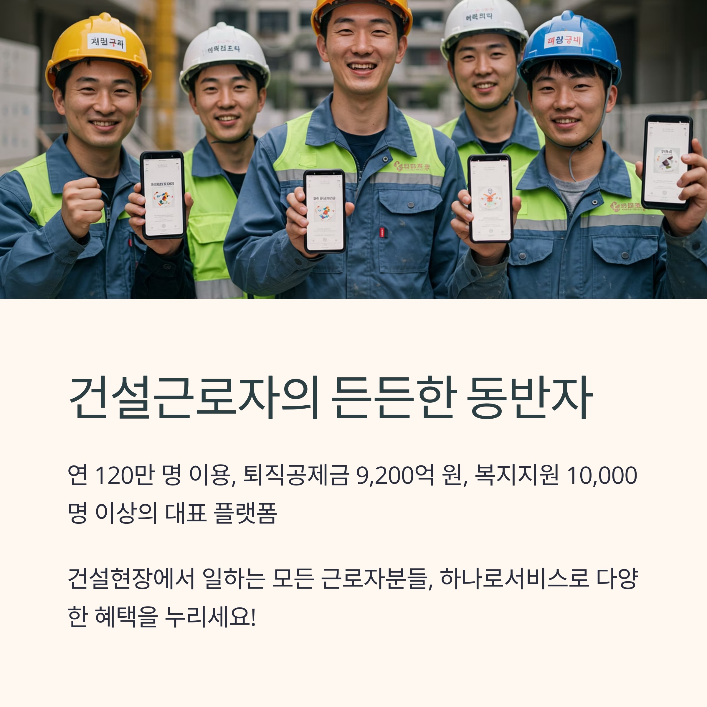 건설근로 공제회 하나로서비스는 2025년 현재 연 120만 명 이상이 이용하는 대표적인 건설근로자 복지 플랫폼입니다. 퇴직공제금 연간 지급액이 9,200억 원에 달하며, 건강검진 및 보험 지원인원이 연 10,000명 이상으로 건설근로자의 복지 향상에 크게 기여하고 있습니다.