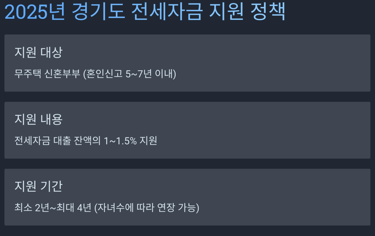3. 2025년 경기도 내 신혼부부 전세자금 대출 및 이자 지원 정책 현황