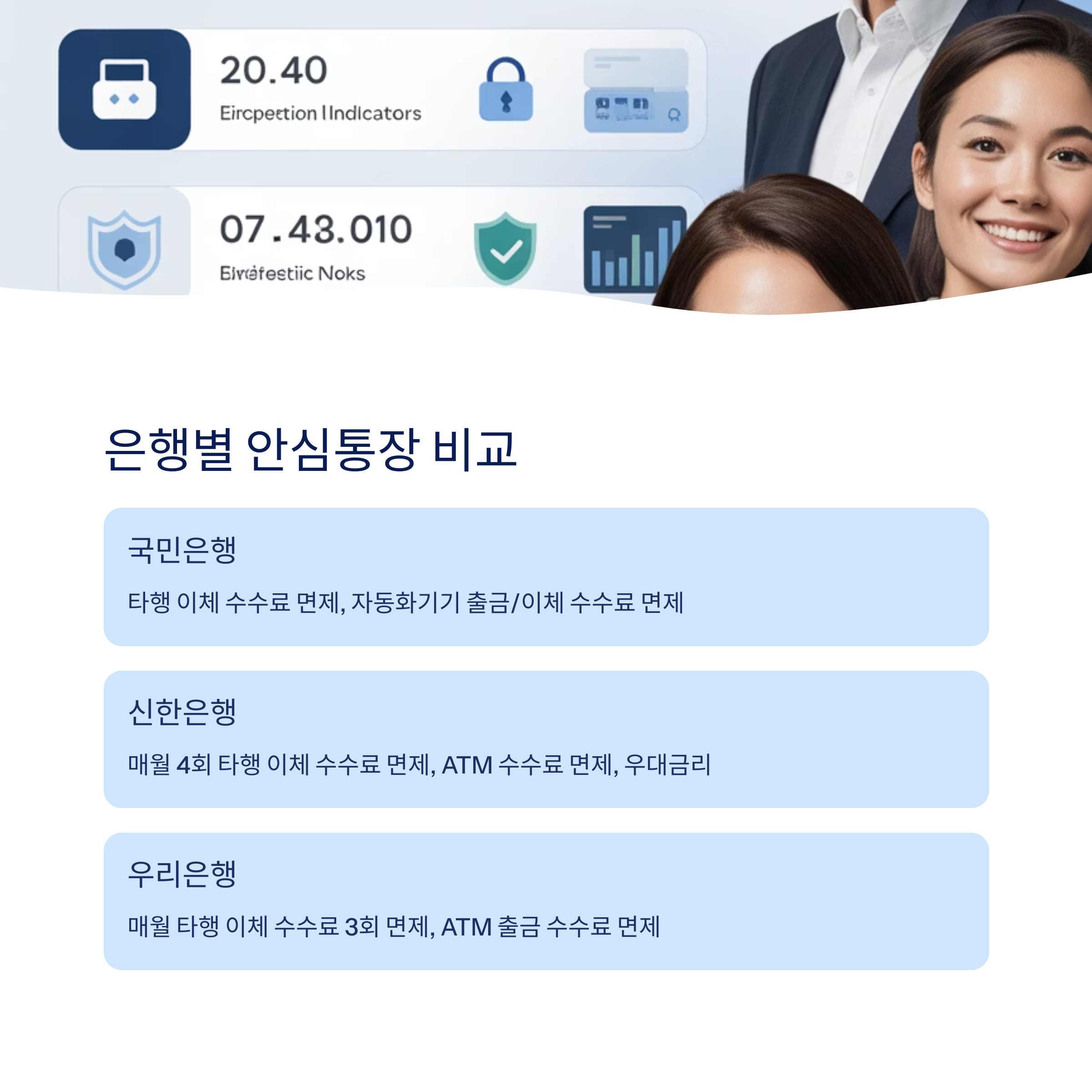 - 국민은행: 'KB국민연금 안심통장' - 매월 일정 횟수 타행 이체 수수료 면제, 자동화기기 출금/이체 수수료 면제 혜택 제공