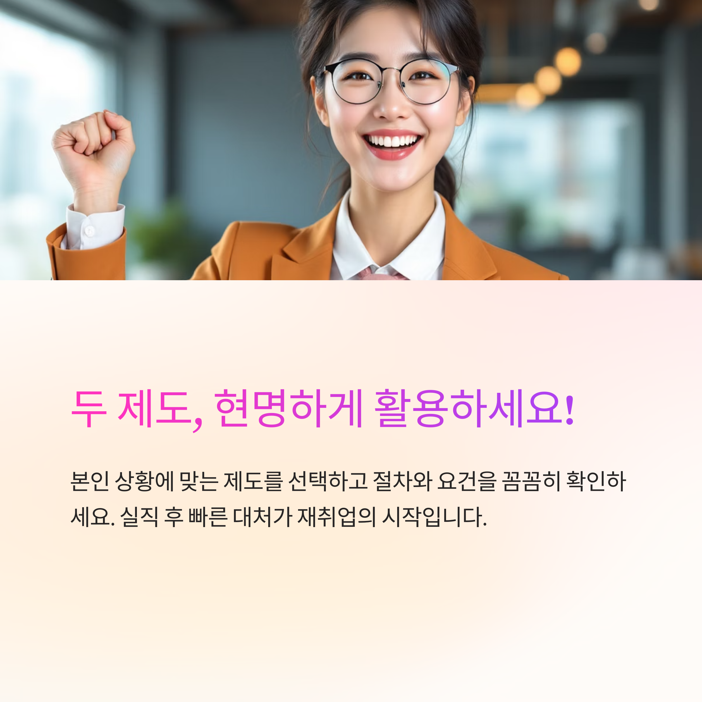 - 둘 다 해당된다면 실업급여 수급 후 국민취업지원제도로 연계 가능