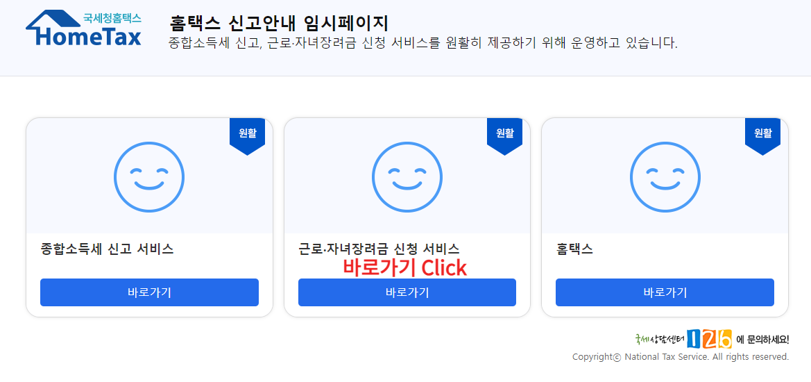 - 신청/제출 → 근로장려금 신청 클릭