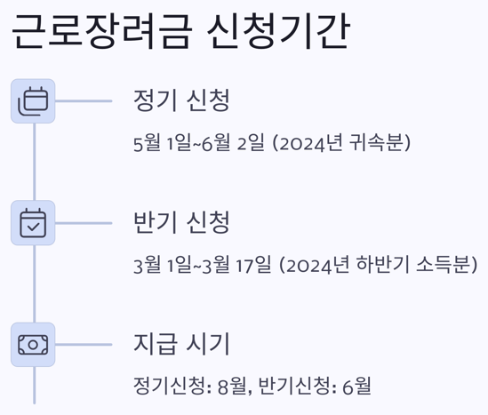 2025년 근로장려금 신청은 정기 신청과 반기 신청 두 가지 방식으로 가능합니다. 각각의 신청 기간과 지급 일정은 다음과 같습니다.