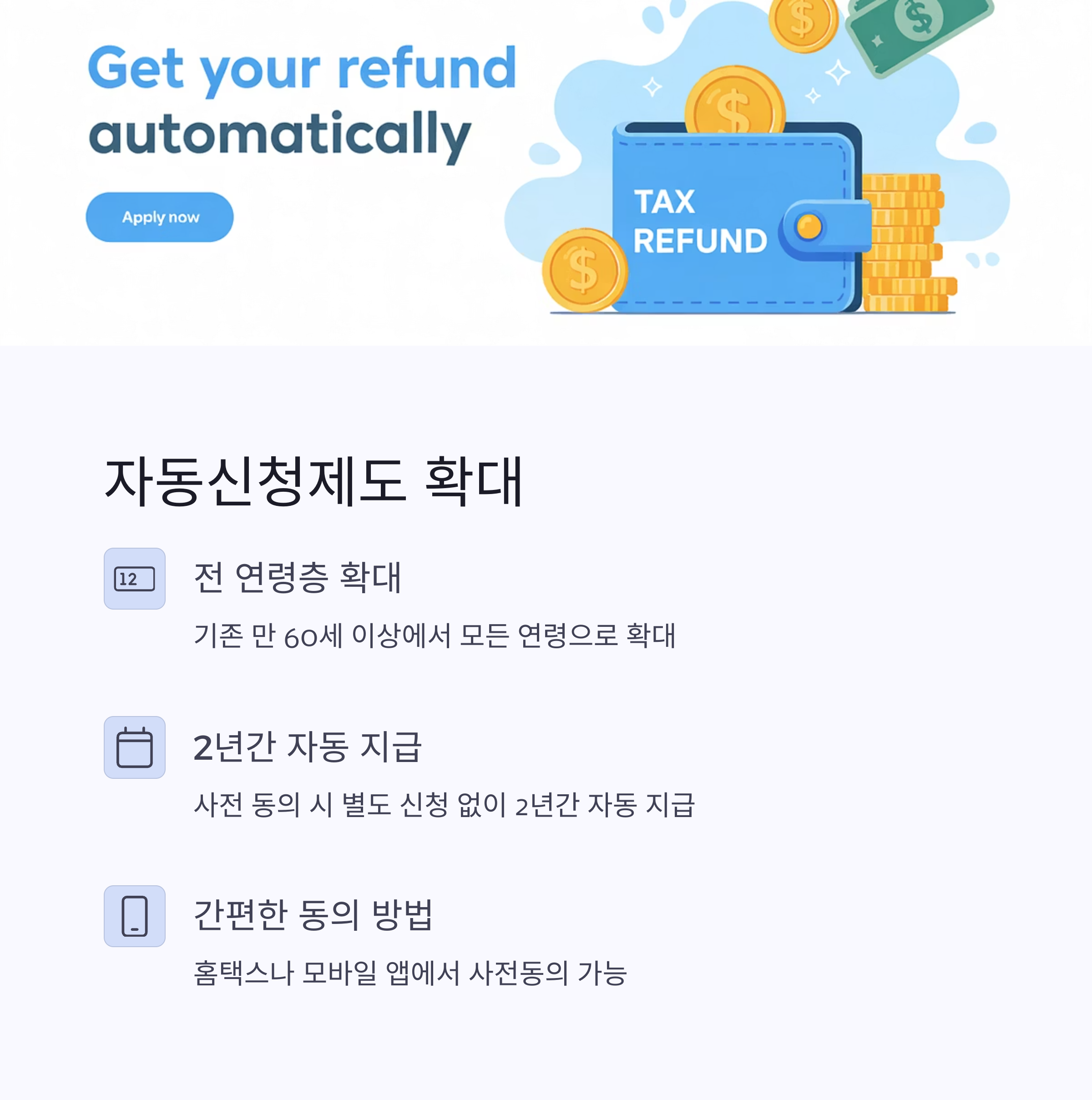 - 특히 새롭게 확대된 자동신청 제도를 활용하면 더욱 편리하게 이용할 수 있습니다.