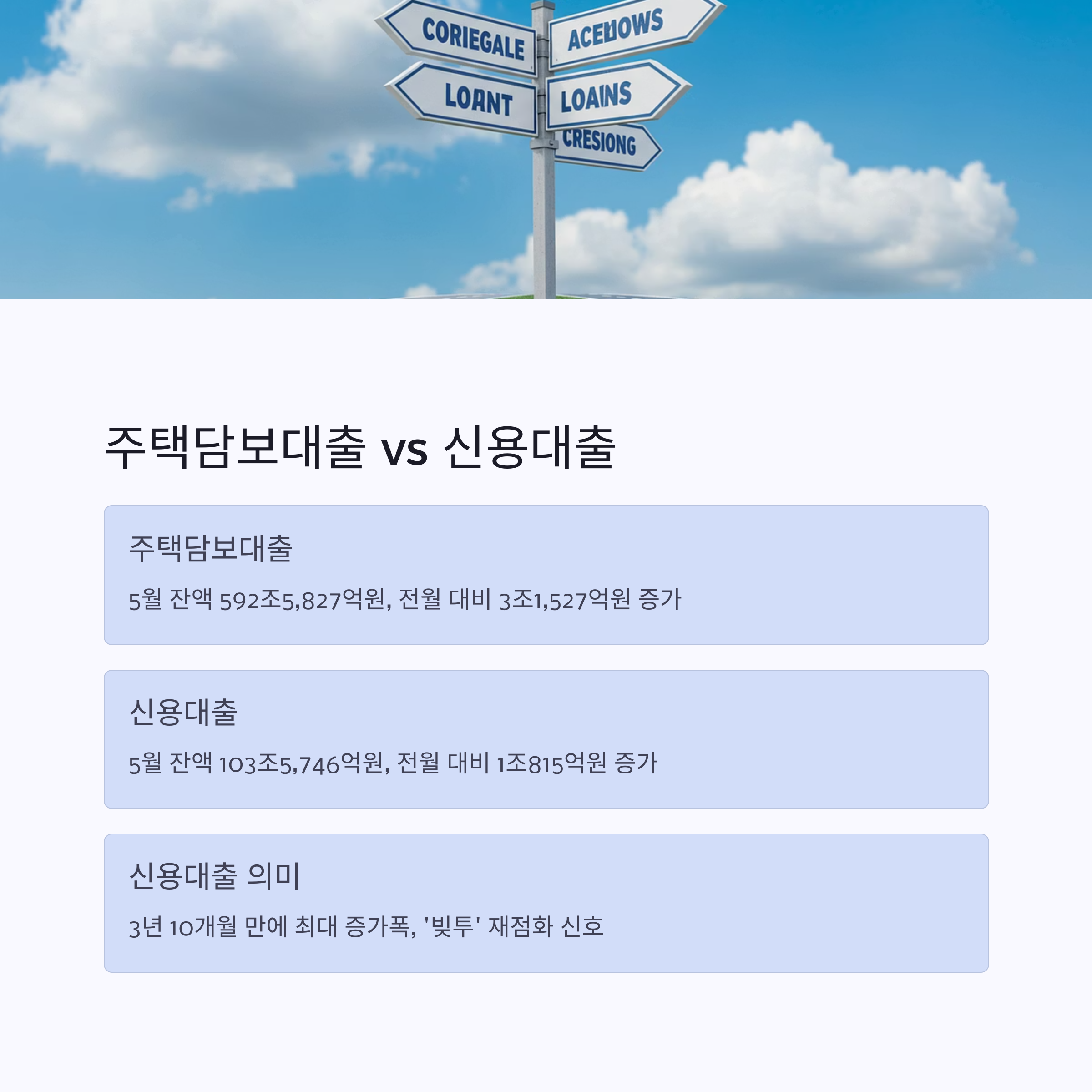 - 주택담보대출: 5월 잔액은 592조5,827억원으로 전월 대비 3조1,527억원 증가했습니다. 3월 2조3,198억원, 4월 3조7,495억원에 이어 꾸준히 늘어나는 추세죠. 집값이 다시 오를 거라는 기대 심리가 반영된 것 같아요.