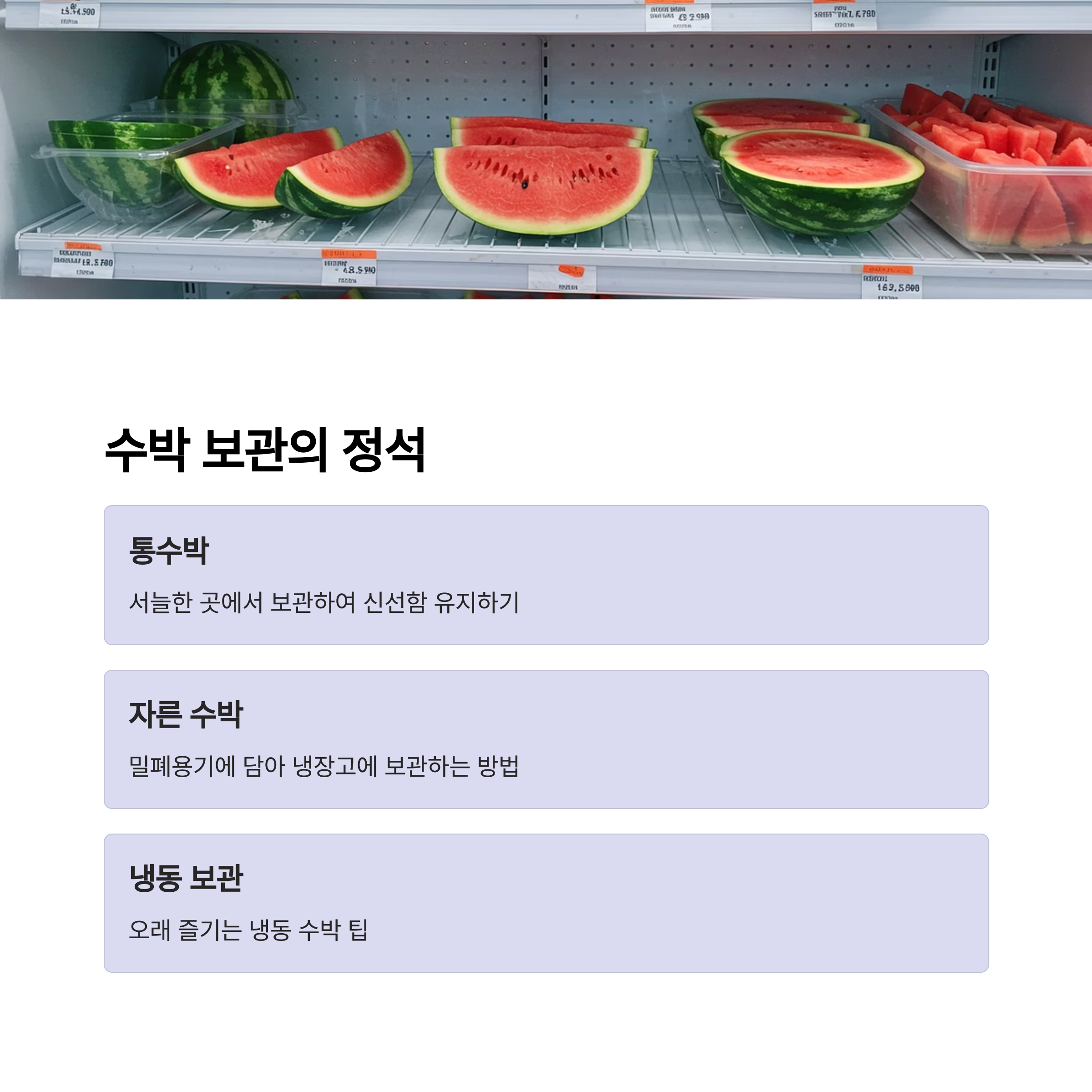 | 2. 수박 보관의 정석: 신선함 오래오래 | 통수박부터 자른 수박까지 완벽 보관법 |