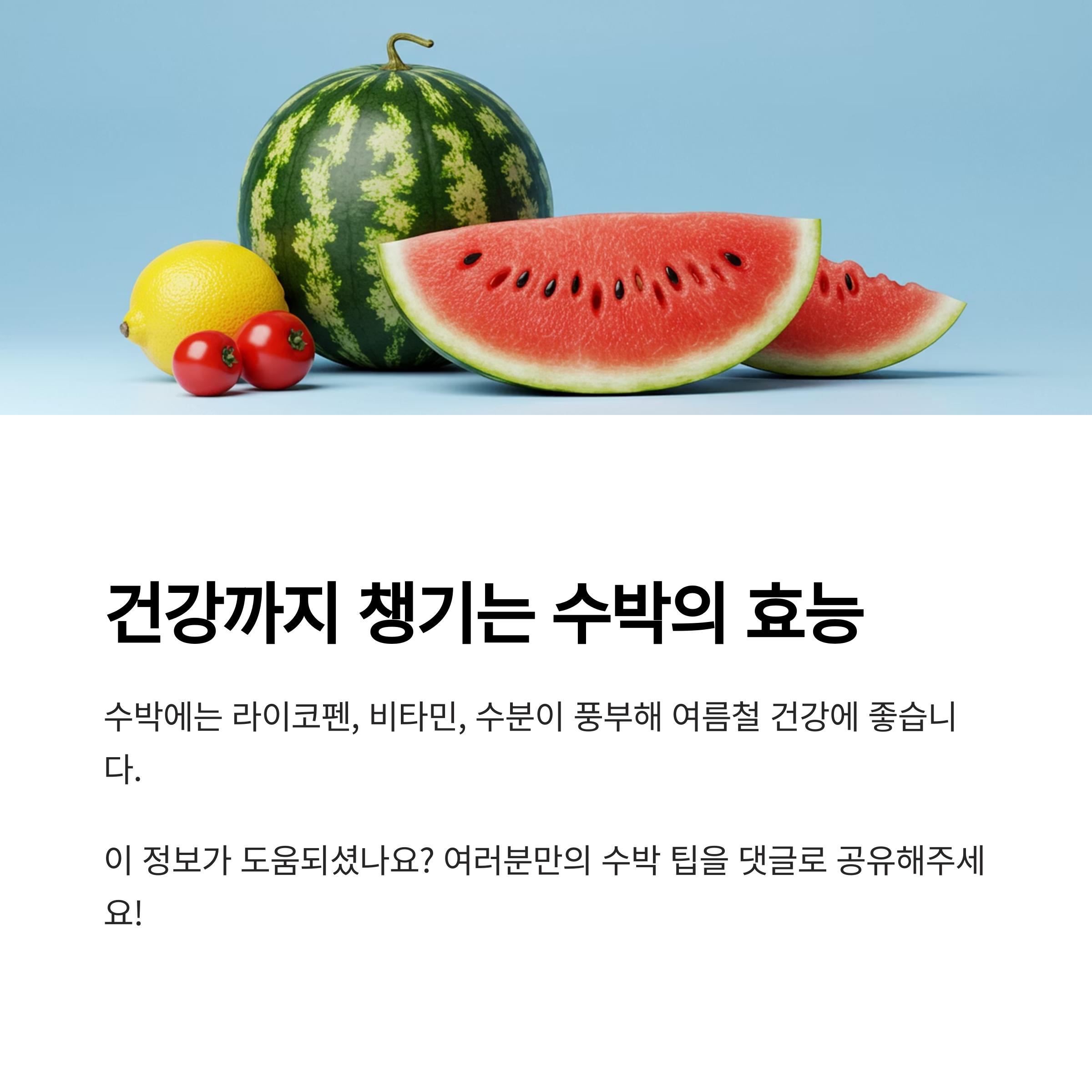 어떠세요? 이제 수박 고르기부터 보관, 그리고 다양한 레시피까지 완벽 마스터한 기분이 드시나요? 올해 여름에는 이 팁들로 정말 후회 없는 꿀수박 라이프를 즐기시길 바라요! 더 궁금한 점이 있다면 언제든지 댓글로 물어봐주세요~