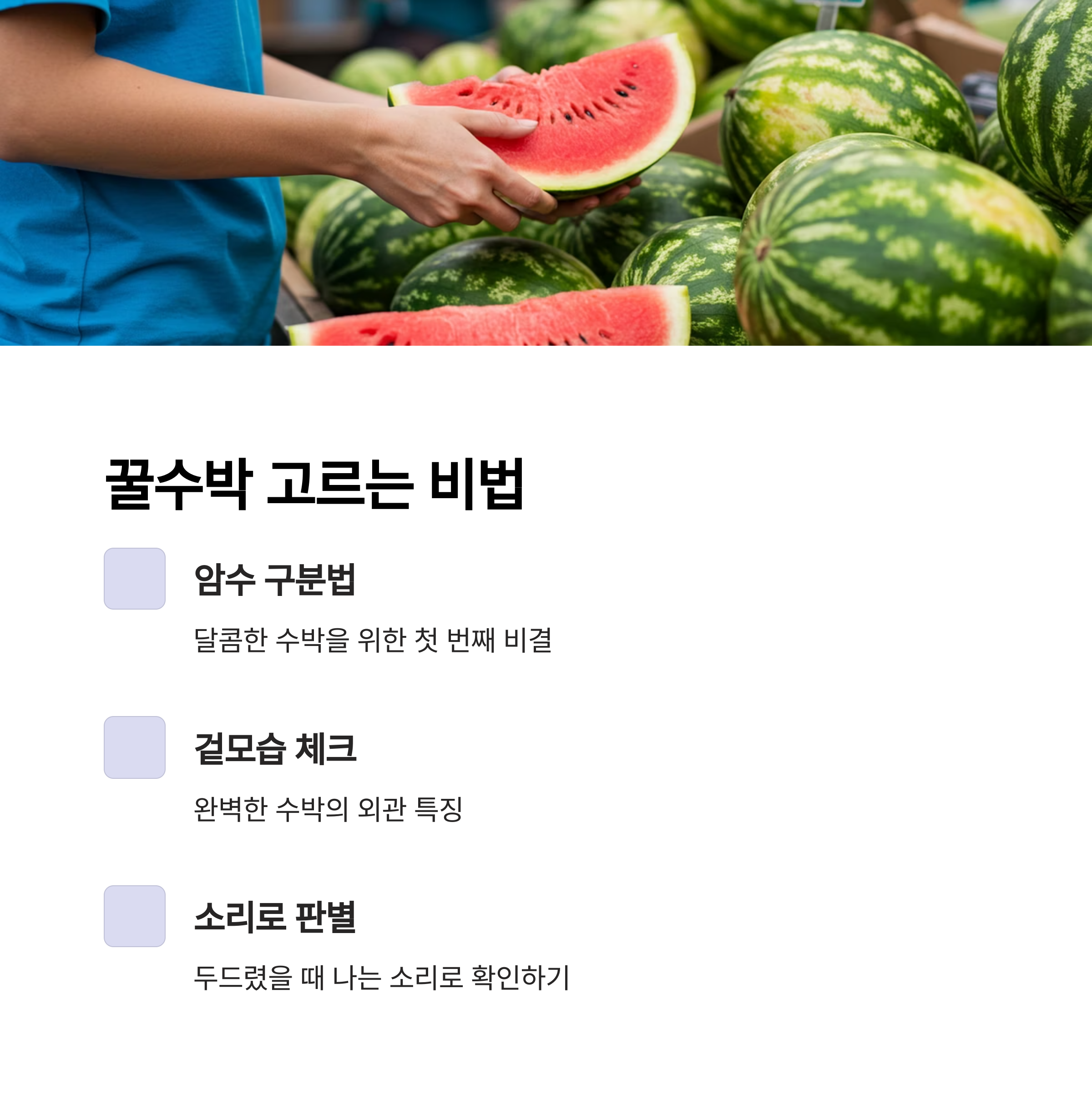 | 1. 꿀수박 고르기: 암수 구분법 & 일반 팁 | 맛있는 수박 고르는 모든 비법! |