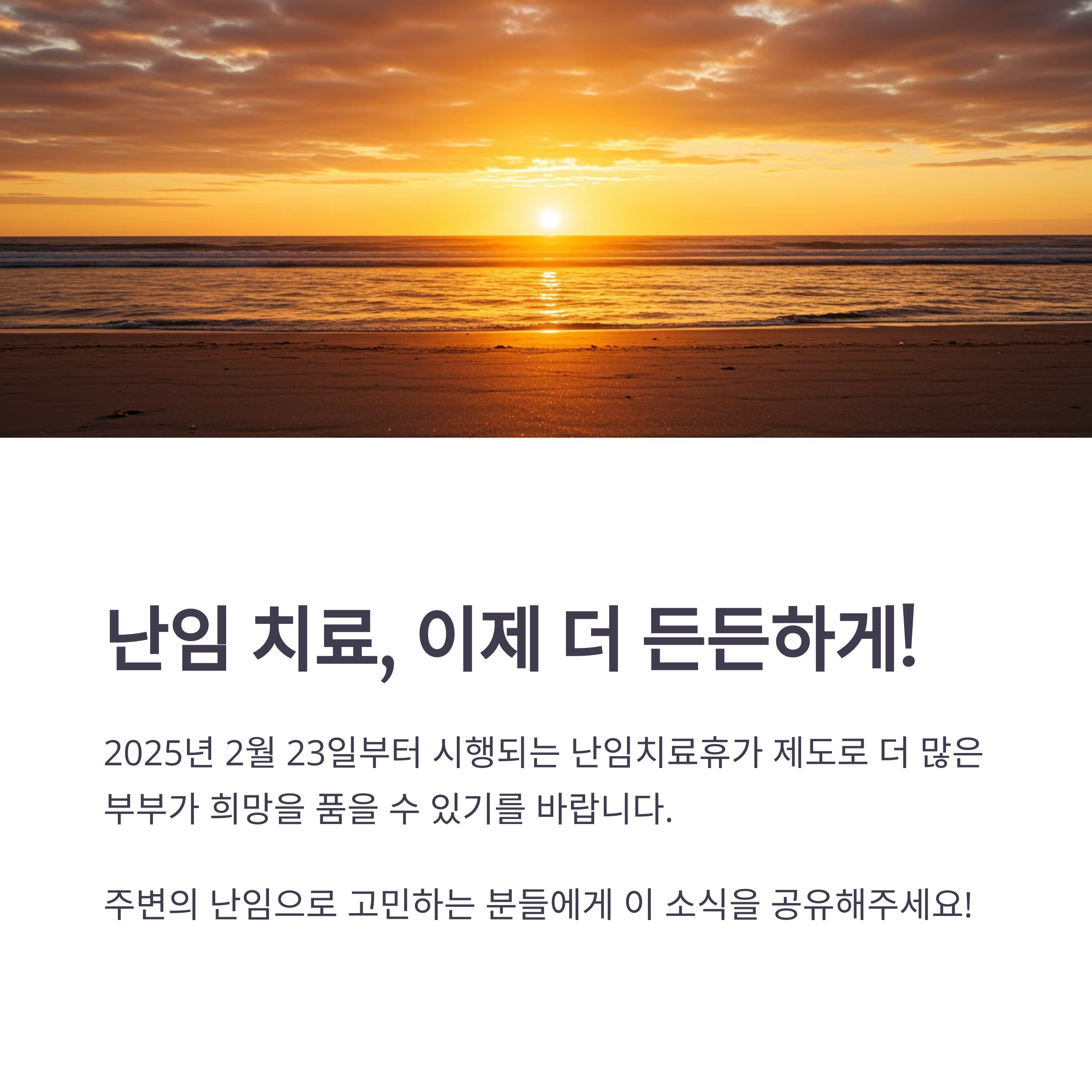 이러한 변화들이 난임 부부들에게 실질적인 도움이 되고, 사회적으로도 긍정적인 파급 효과를 가져오길 진심으로 바랍니다.