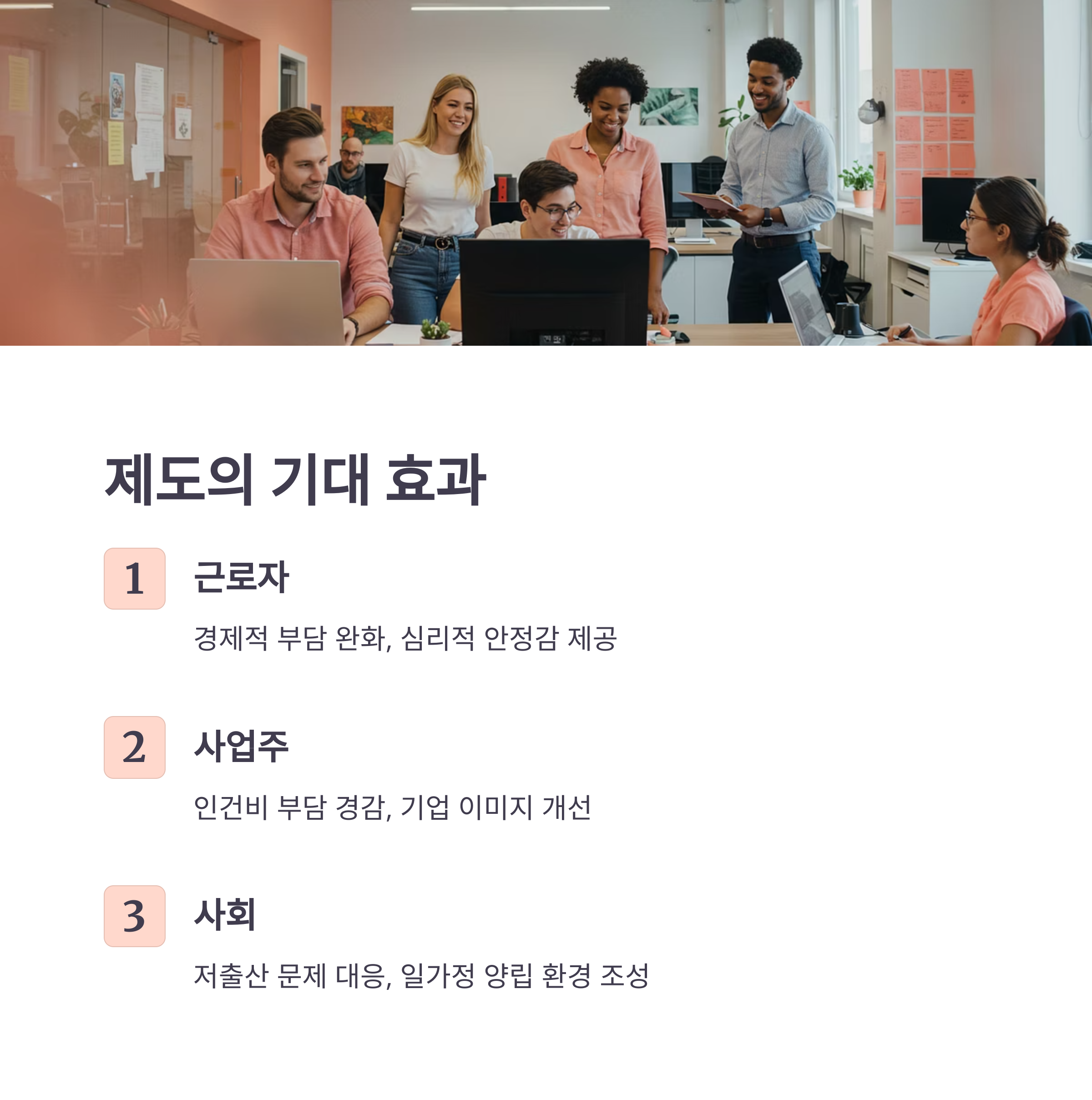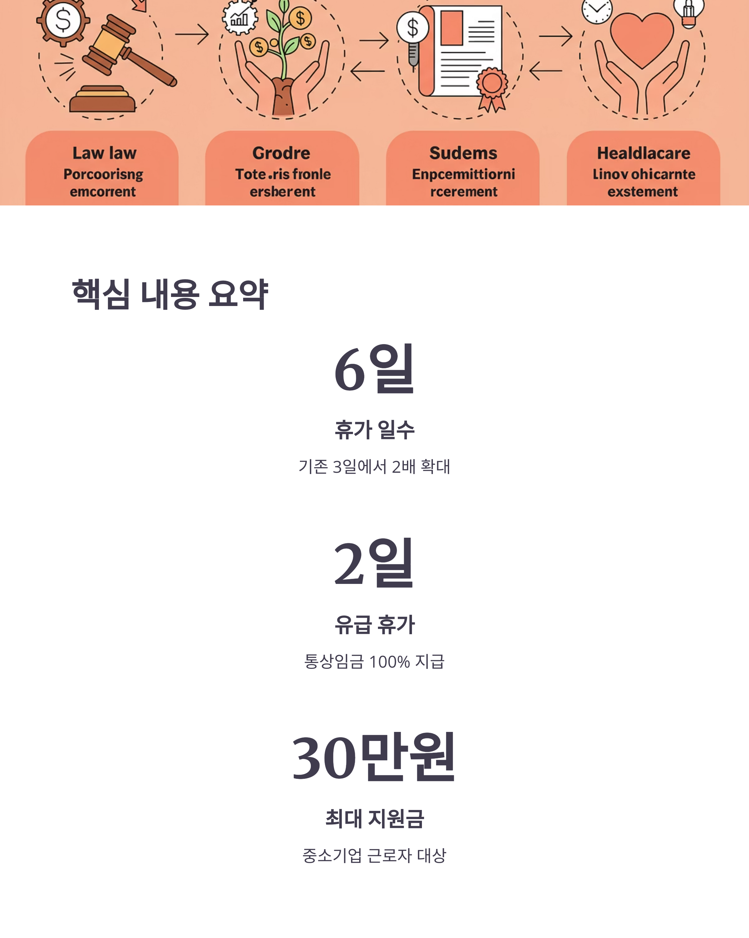 휴가 일수 확대도 좋지만, 무엇보다 중요한 건 경제적인 부담을 덜어주는 지원금이 신설된다는 점이에요. 특히 중소기업 근로자들에게 희소식이 될 것 같아요!
