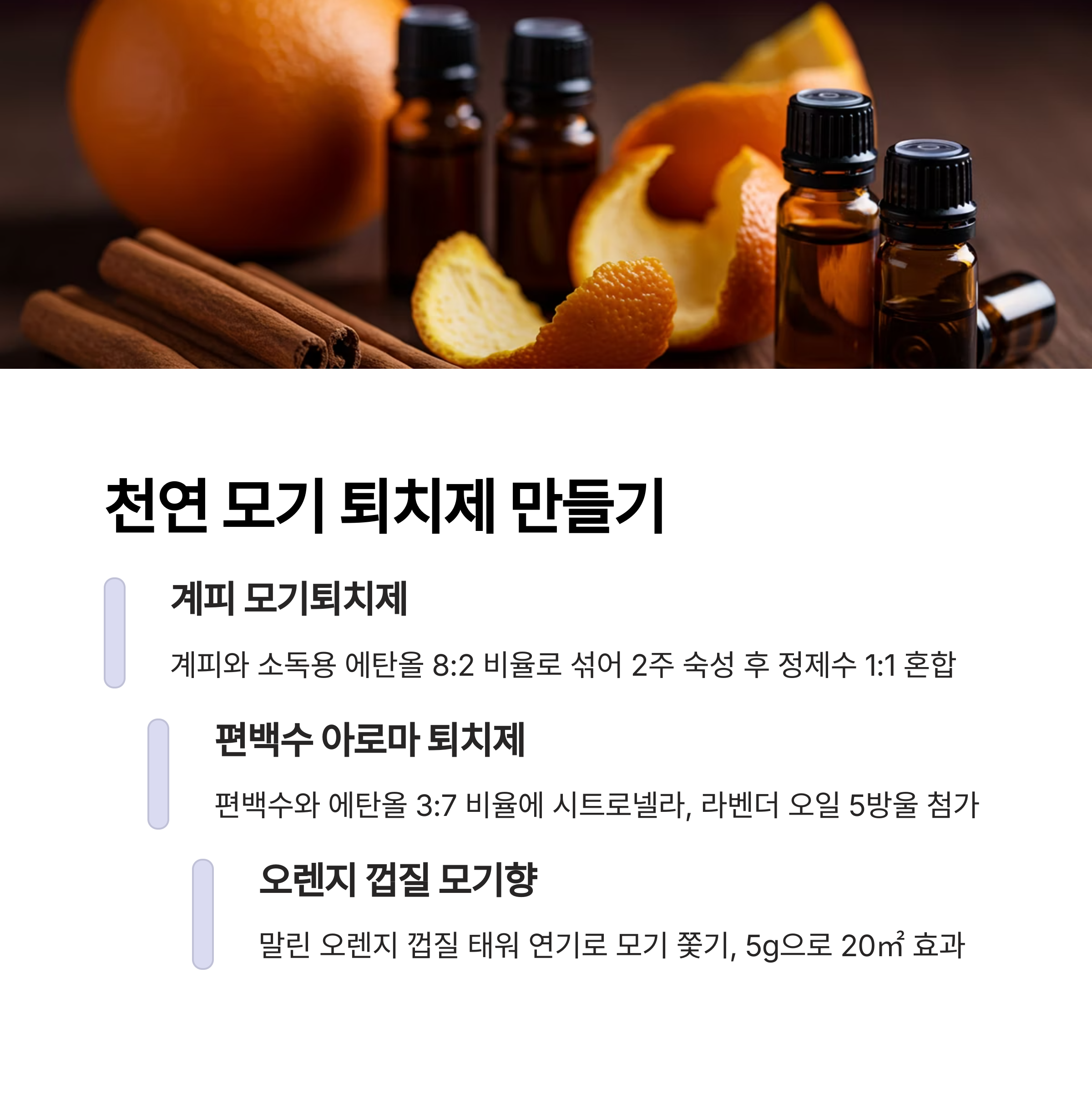 | 천연 퇴치제 | 계피·편백수·아로마오일 혼합, 1주일 내 사용, 피부·옷 활용 |