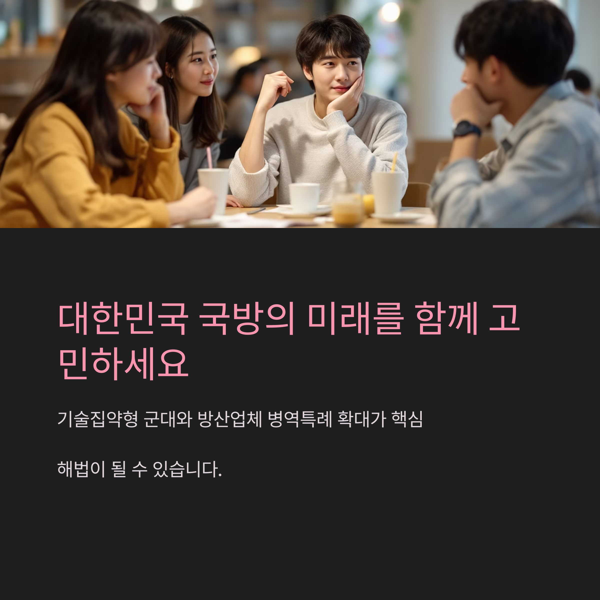 ✅ 핵심 제언: 대한민국의 미래 병역제도는 '단순 인력 확보'보다 '전문성과 기술력 강화'에 초점을 맞추는 방향으로 발전해야 합니다. 이는 저출산 시대에 부족한 인적 자원을 효율적으로 활용하면서 동시에 국방력을 제고하는 최적의 방안입니다.