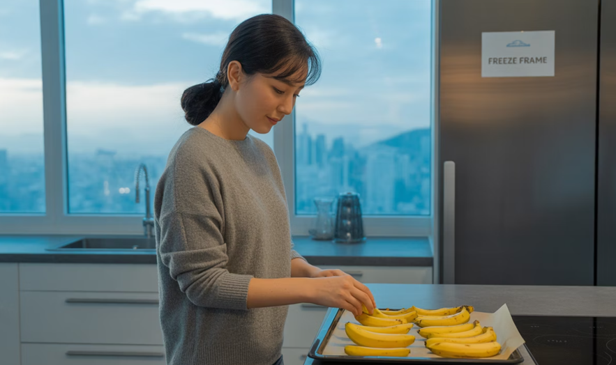 3. 으깨서 냉동: 너무 익어서 으스러지는 바나나는 미리 으깨어 지퍼백에 납작하게 펼쳐 냉동합니다. 필요할 때 한 조각씩 잘라 쓰기 편리합니다.