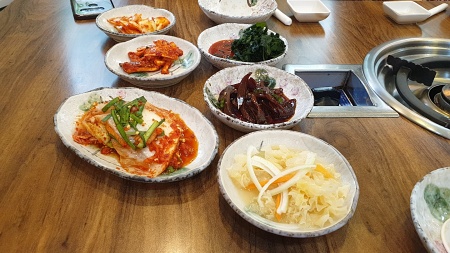 반찬으로 나온 음식들도 하나같이 손 안가는 음식이 없을 정도로 맛이 있다. 직접 담근 김치와 양송이 간장조림 그리고 더덕무침 버섯 겨자 무침 등. 부추와 능이를 다 먹고 나면 리필을 해서 먹을 수 있다. 하지만 무료가 아닌 유료라는 점. 문어를 두 마리나 넣어 줬는데 쫄깃쫄깃한 식감이 술안주로 맞고 잘 익은 오리를 부추와 같이 초고추장 찍어 먹는 맛도 괜찮았다.