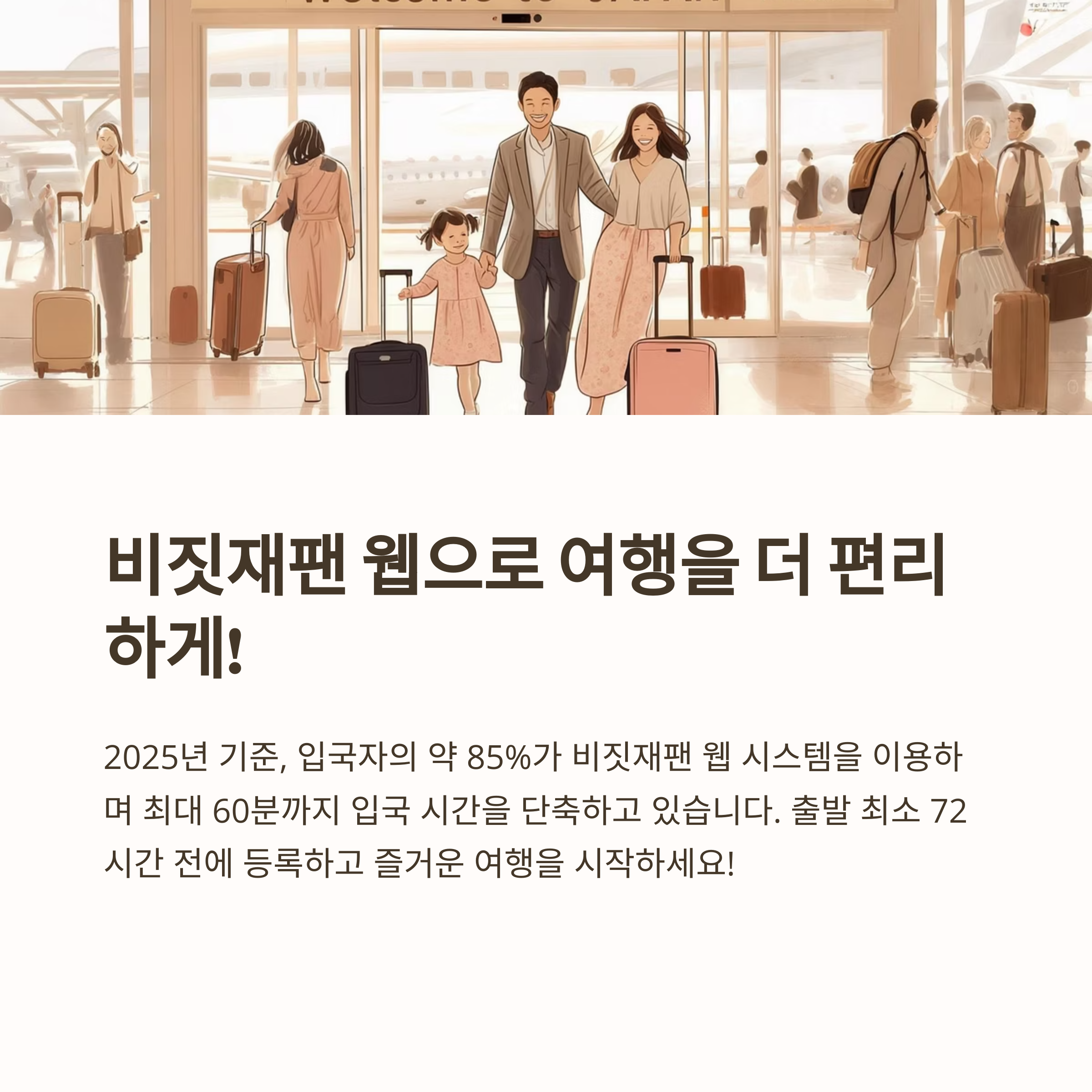 | 주요 공항 이용률 | 2025년 기준 입국자의 약 85%가 비짓재팬 웹 시스템 이용 |