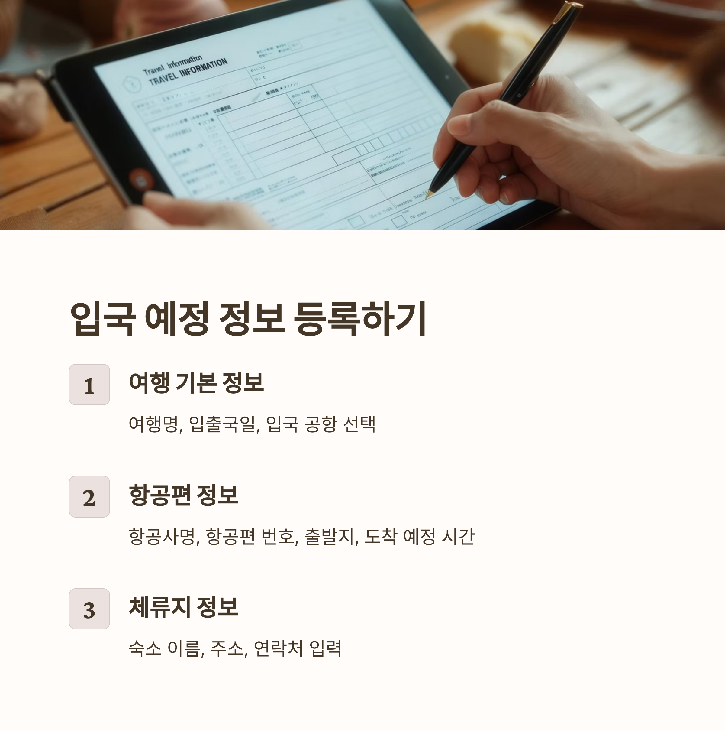 입국 예정 정보 등록 단계