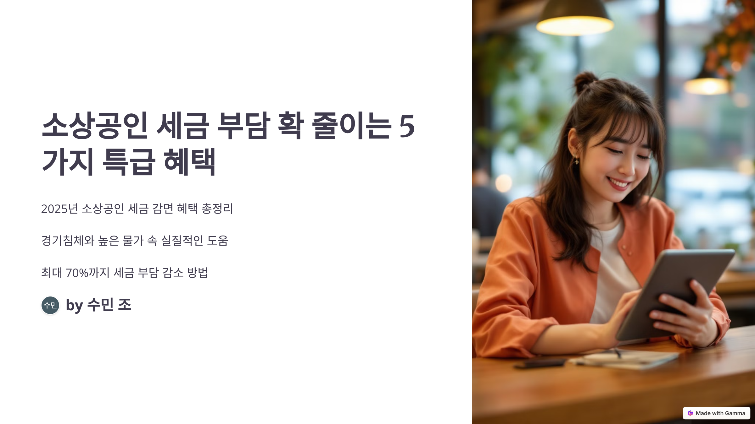 오늘은 2025년 소상공인 세금 감면 혜택에 대해 자세히 알아보겠습니다. 경기침체와 높은 물가로 어려움을 겪고 계신 소상공인분들에게 실질적인 도움이 될 수 있는 정보를 한 곳에 모았습니다. 최대 70%까지 세금 부담을 줄일 수 있는 방법, 지금 바로 확인하세요!