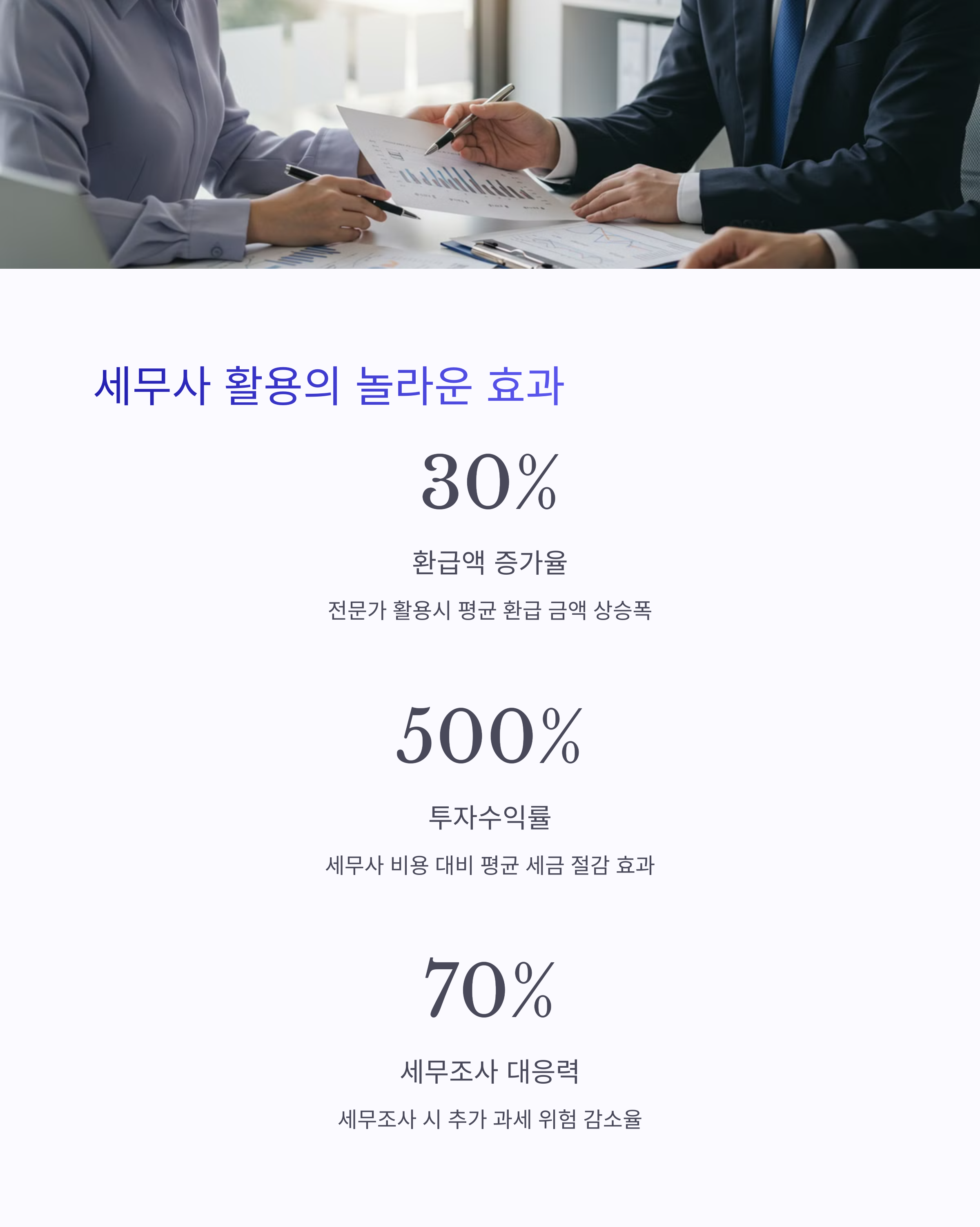 - 세무 계획 수립: 단기적 세금 신고가 아닌 장기적 세무 전략을 함께 수립합니다.