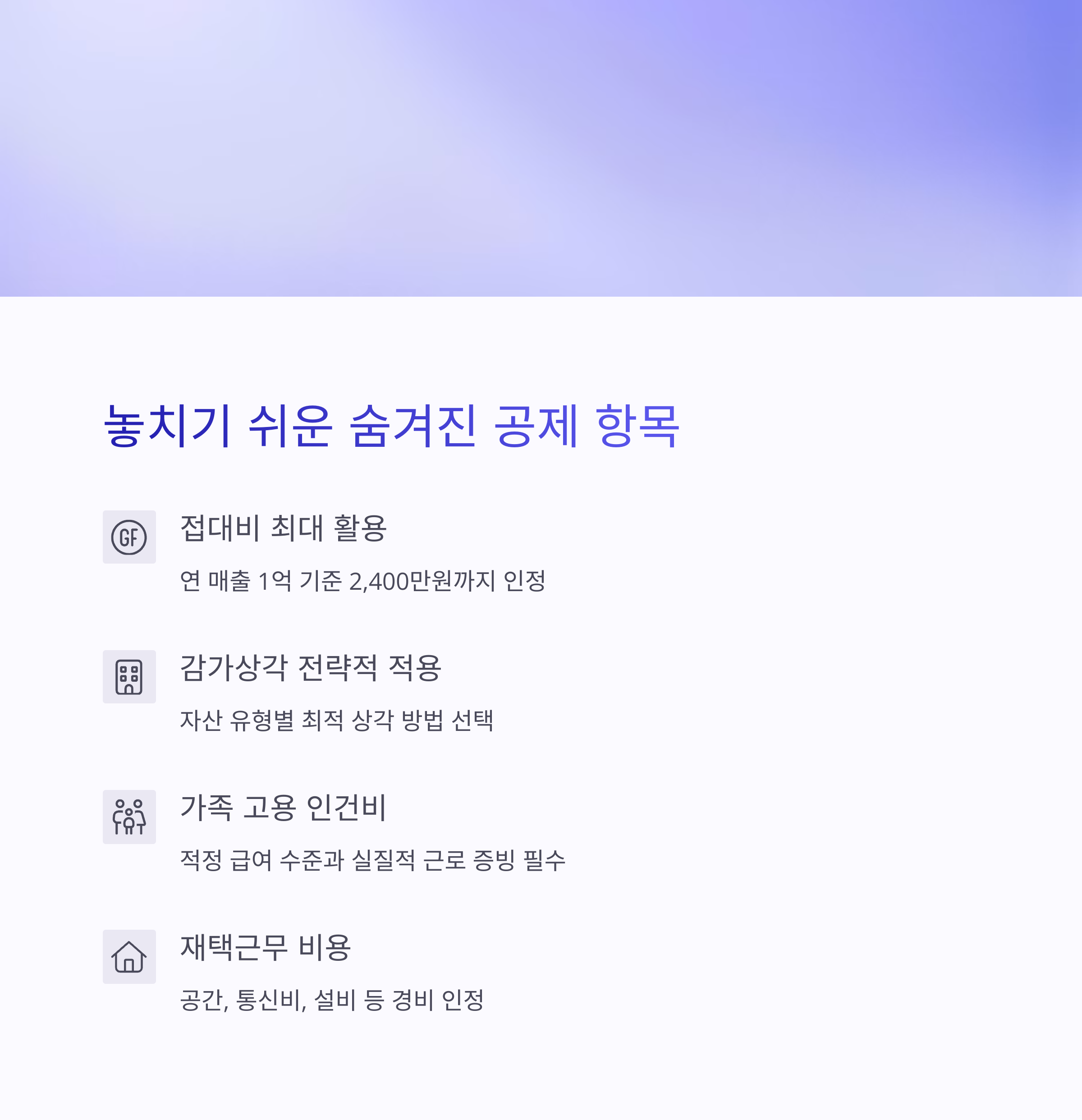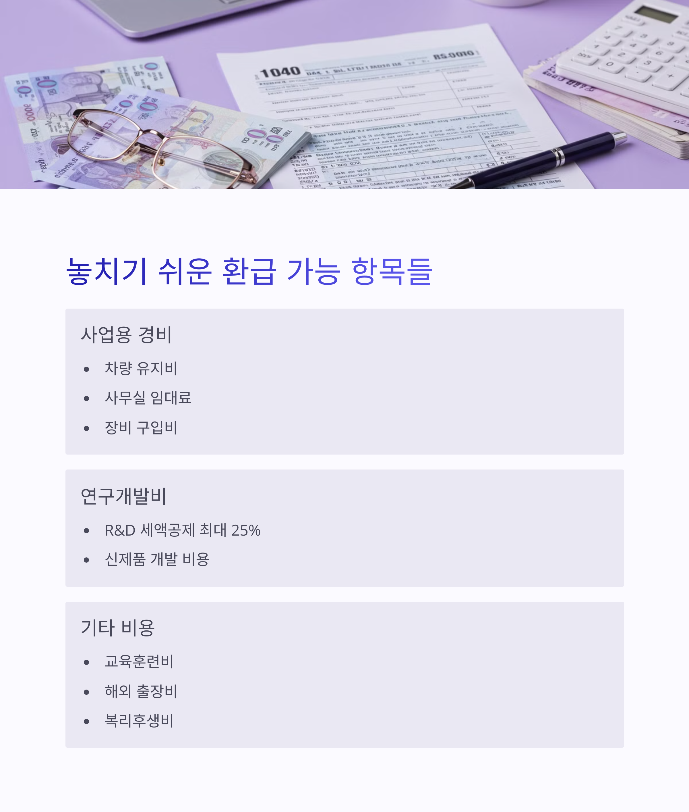 이러한 항목들은 세금 절감에 상당한 효과가 있지만, 많은 사업자들이 제대로 활용하지 못하고 있습니다. 세금 신고 전 이러한 항목들을 체계적으로 검토하는 것이 중요합니다.
