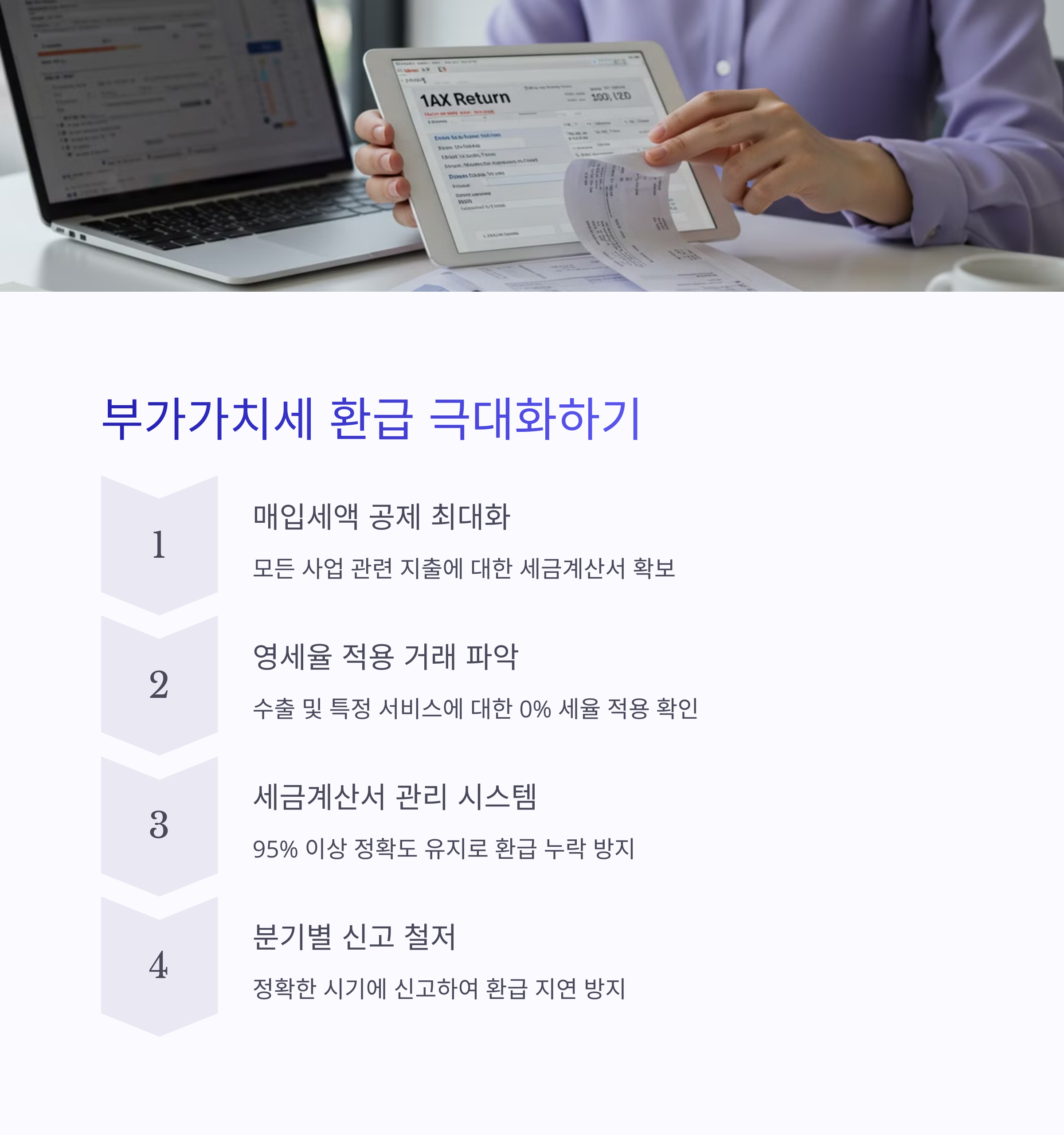- 부가가치세 신고 일정 준수: 정확한 시기에 부가가치세를 신고하여 환급 지연을 방지합니다.