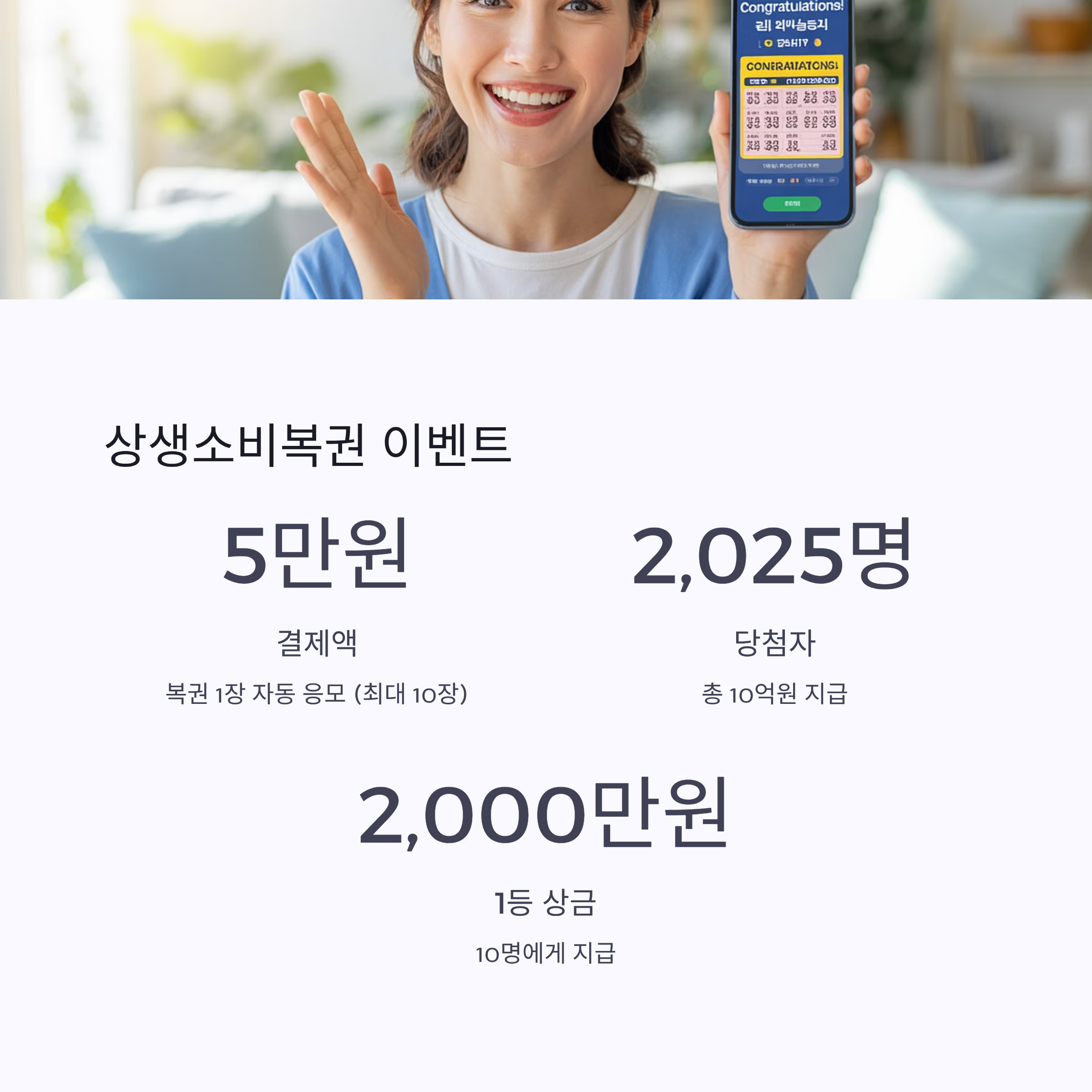 소비도 하고, 페이백도 받고, 복권 당첨의 행운까지! 재테크 관점에서도 좋은 기회입니다.