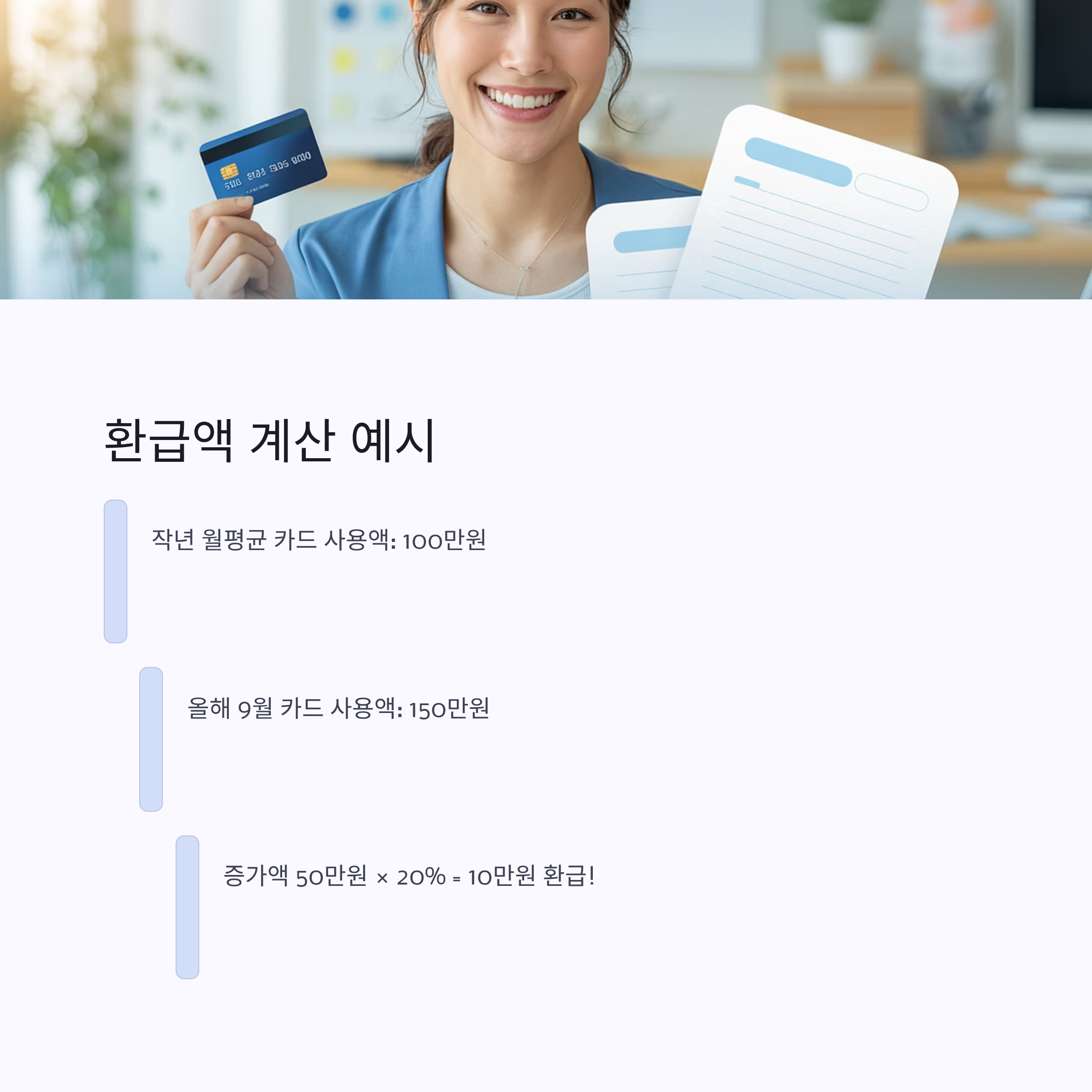 증가액 50만원(150만-100만) × 20% = 10만원 환급! (월 최대 한도)