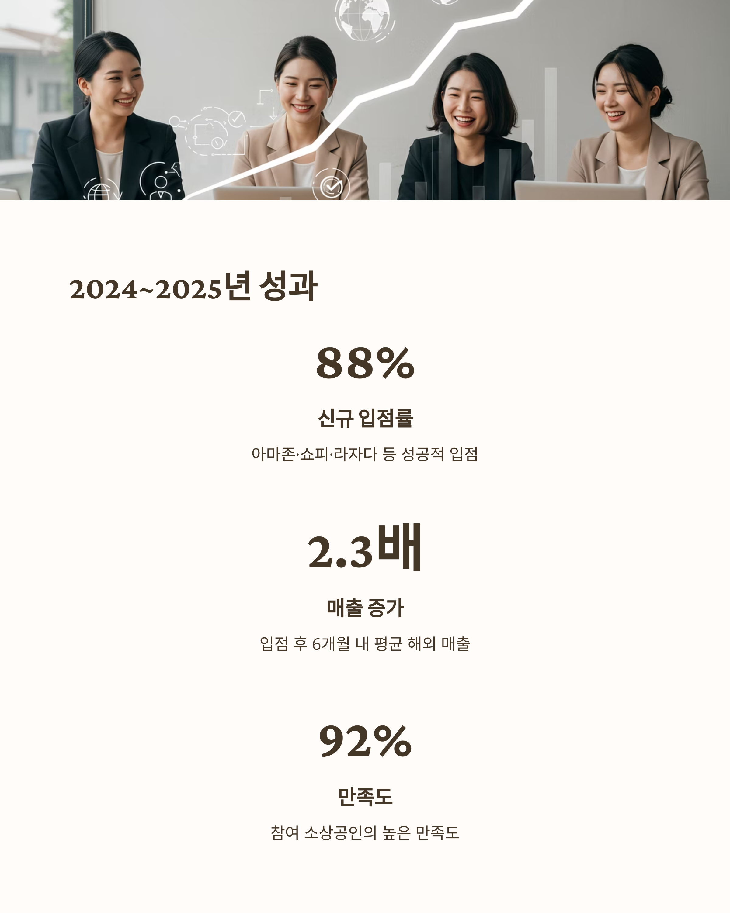 - 주요 성과: 평균 해외 매출 2.3배 증가! (소상공인 매출 증가)