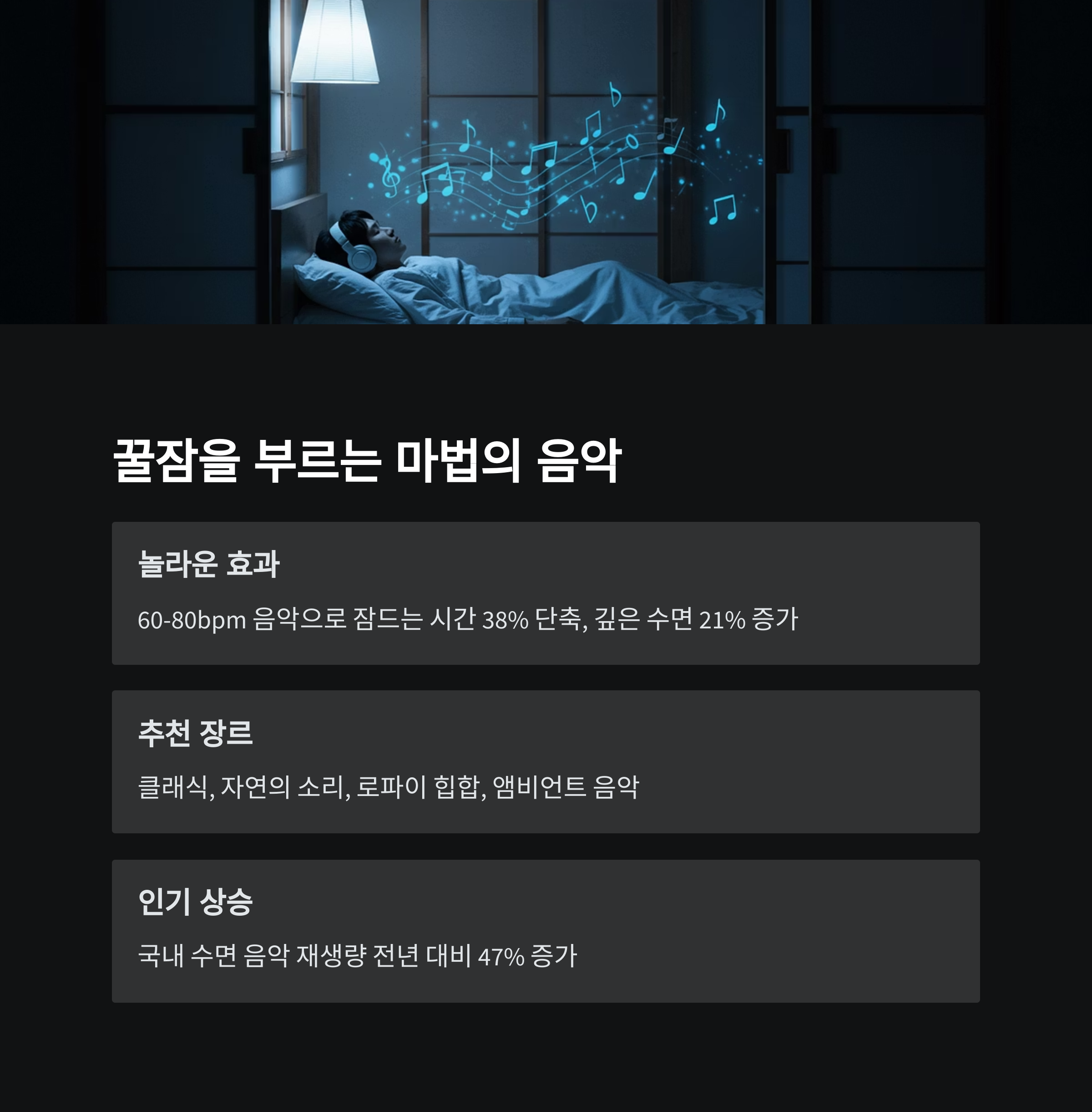3. 꿀잠 주파수 ON! 수면의 질을 높이는 마법의 음악