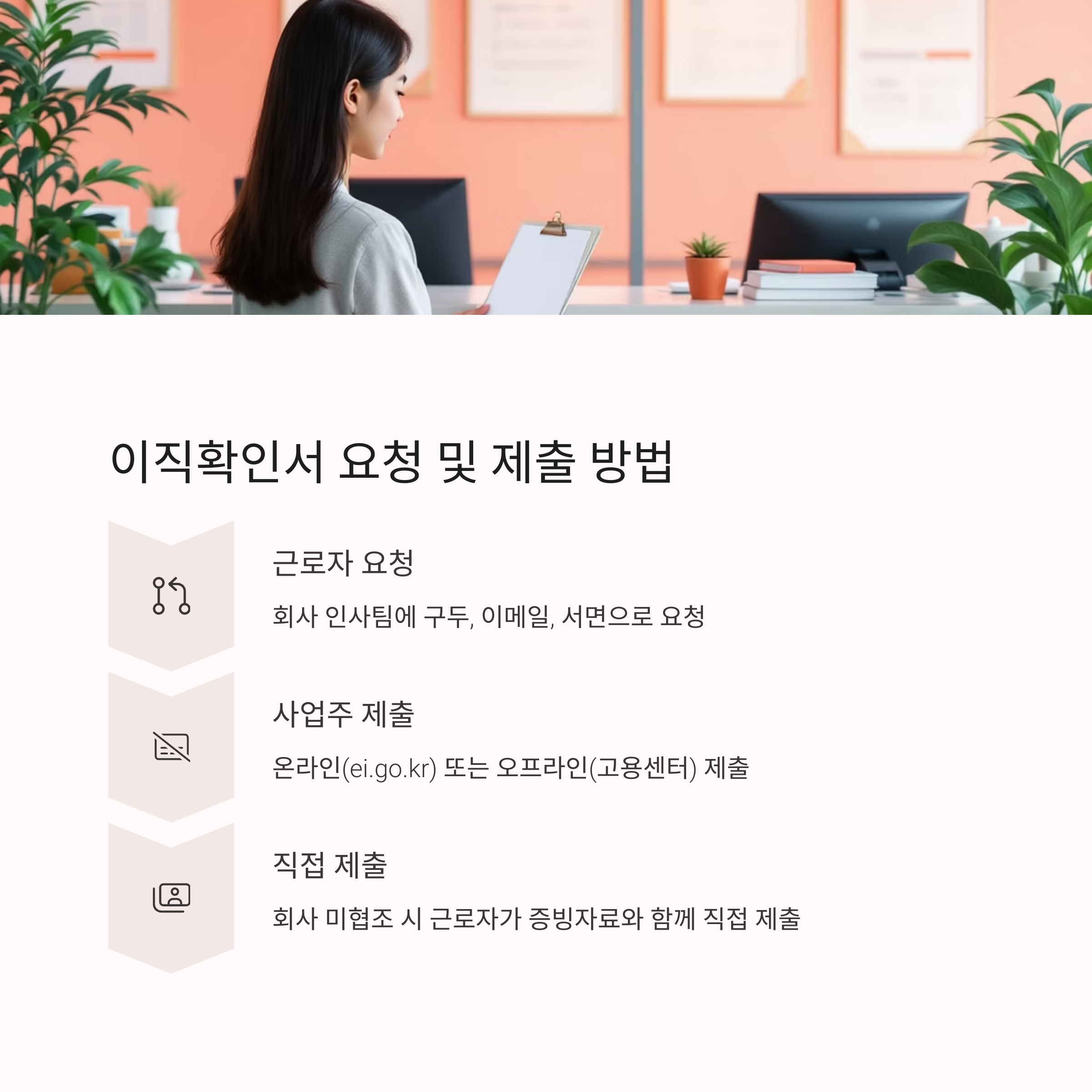 이직확인서가 없으면 실업급여 신청 자체가 불가능하므로, 퇴사 후 곧바로 이직확인서 발급을 요청하는 것이 중요합니다.
