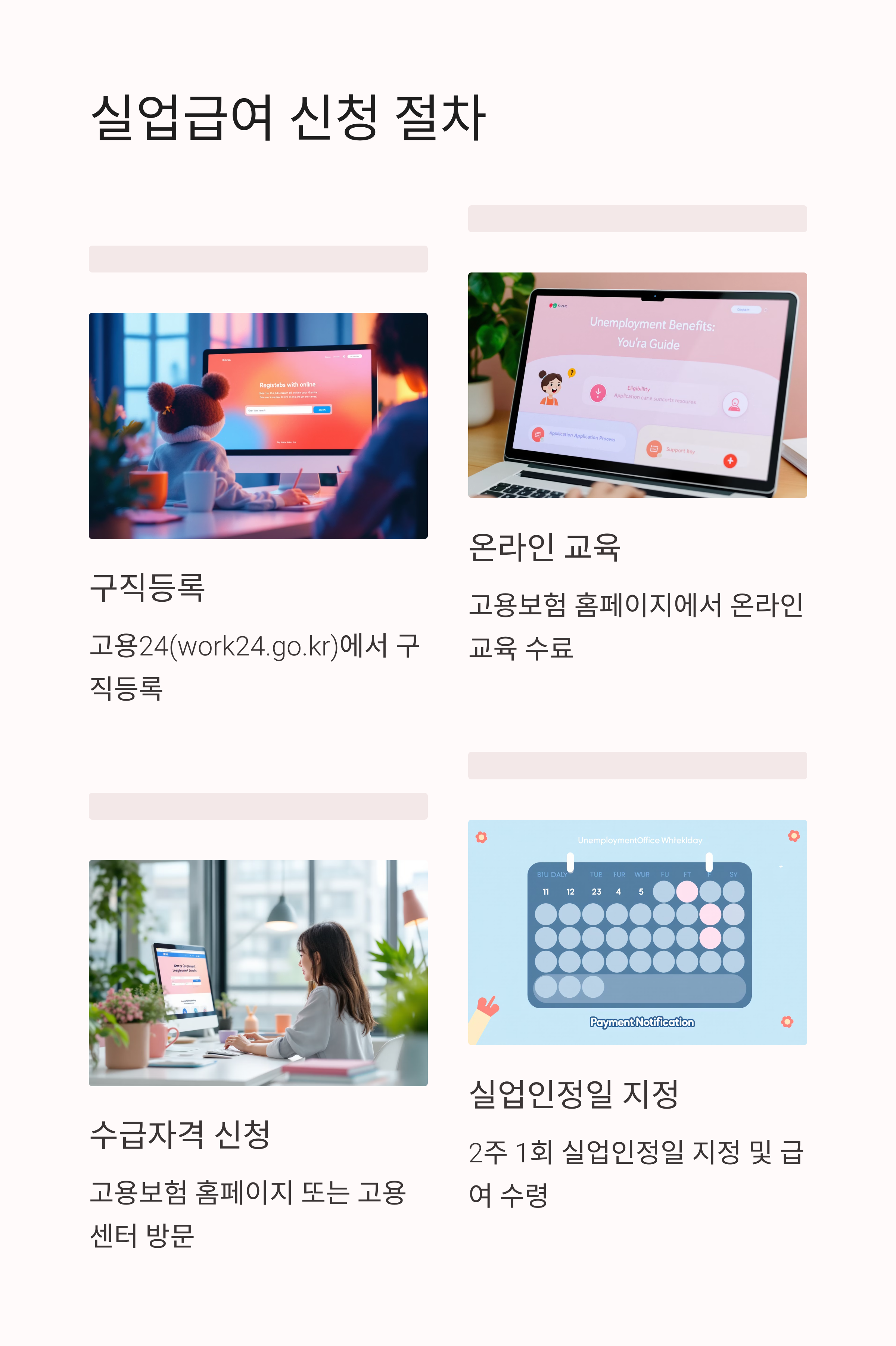 • 실업급여는 이직 후 재취업 활동 기간 동안 생계를 지원하는 중요한 사회안전망입니다.