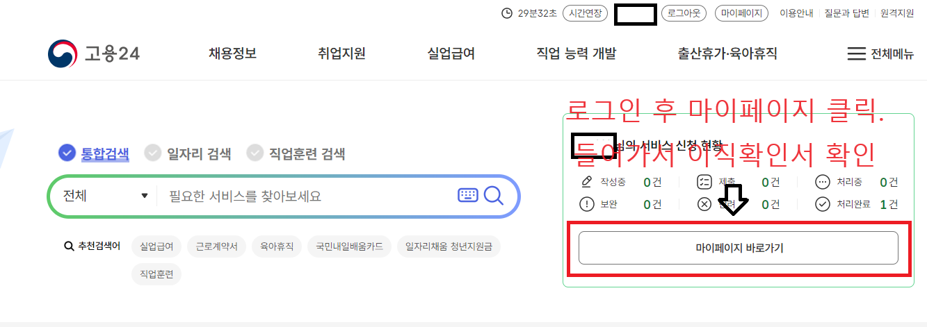 7. 실업급여 신청, [이직확인서 처리 완료] 후 진행하세요
