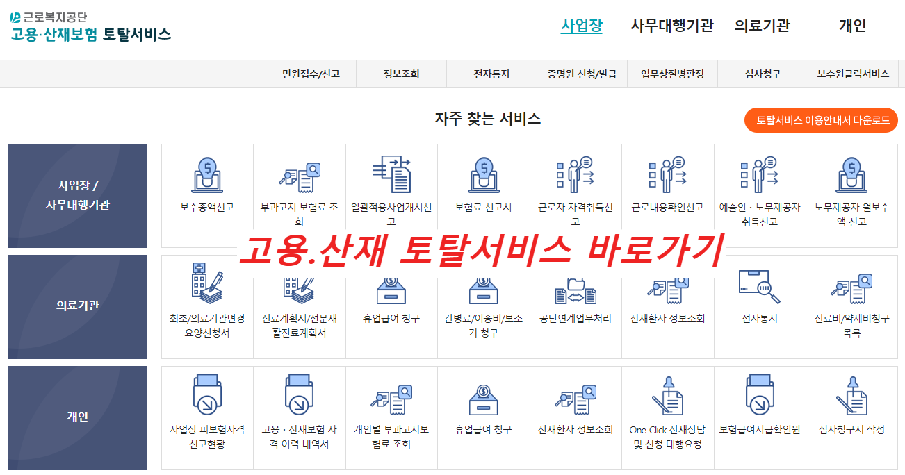 • 고용·산재보험 토탈서비스(total.kcomwel.or.kr) → 고용보험 업무 → 이직확인서 제출
