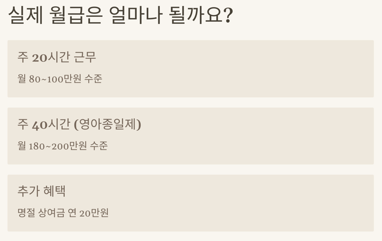 • 영아돌봄 추가수당: 시간당 1,500원 추가 (24개월 이하 영아 돌봄 시)