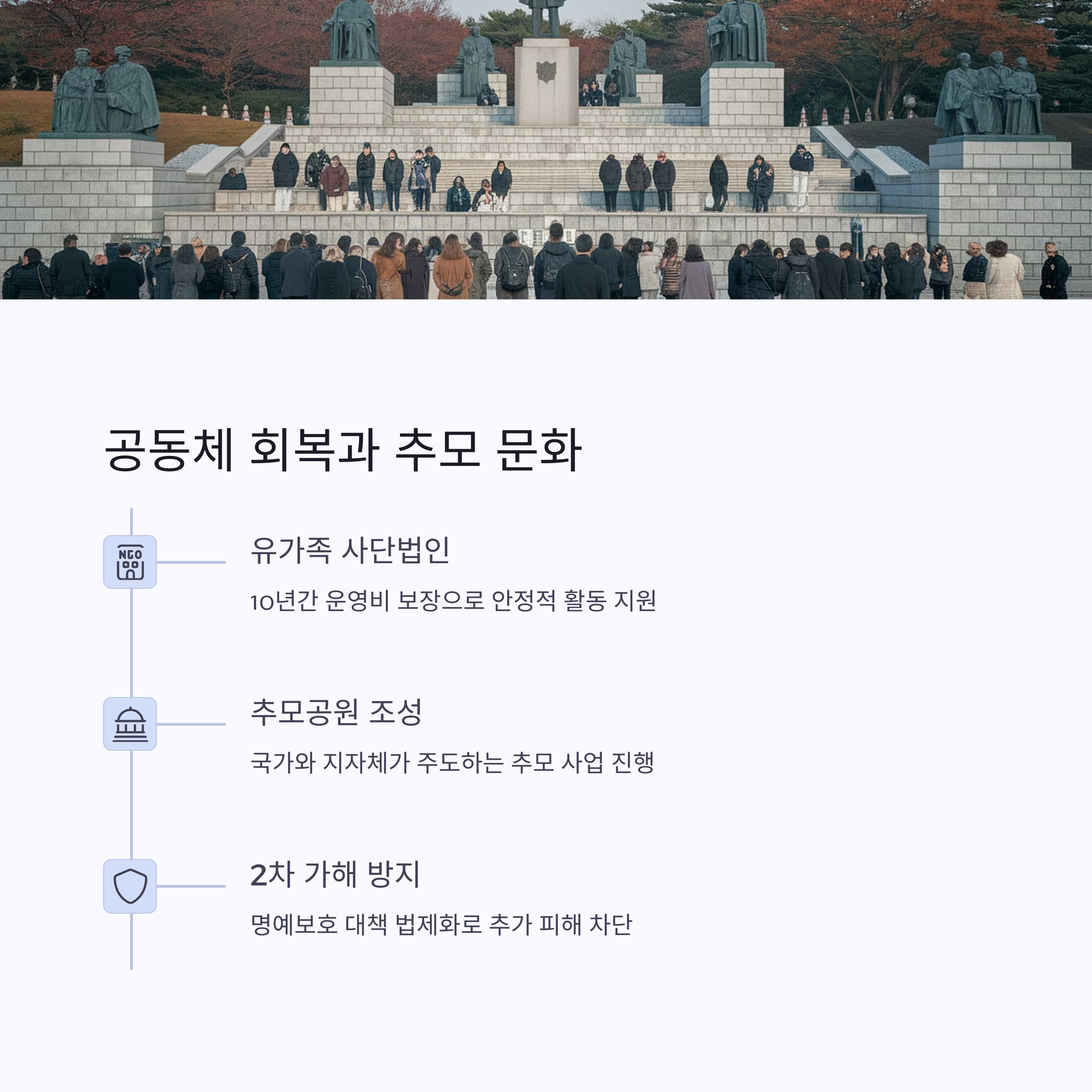 | 기념관 건립 | 참사 기록 및 안전 교육 공간 | 2028년 예정 |