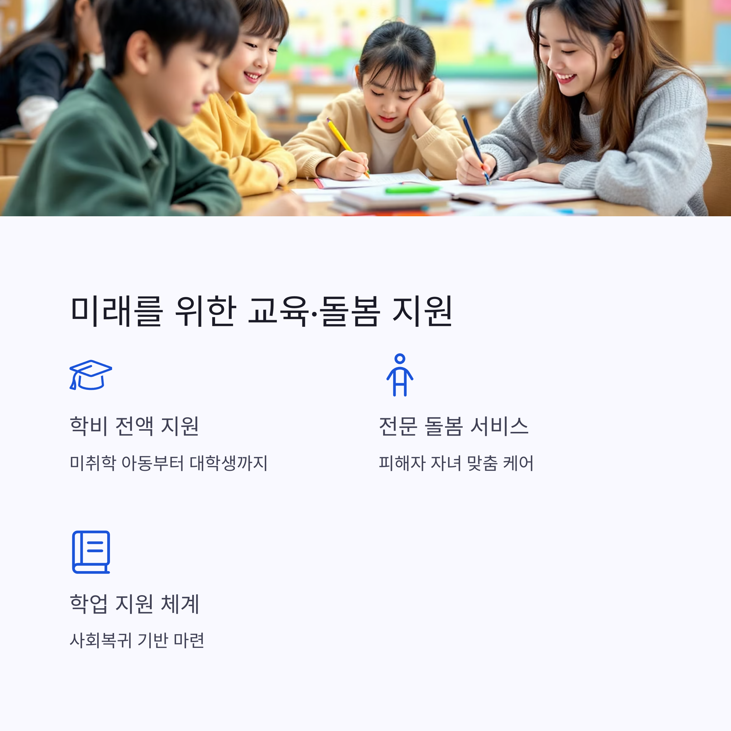 | 대학 등록금 | 전액 지원 (4년제 기준) | 피해자 및 자녀 |