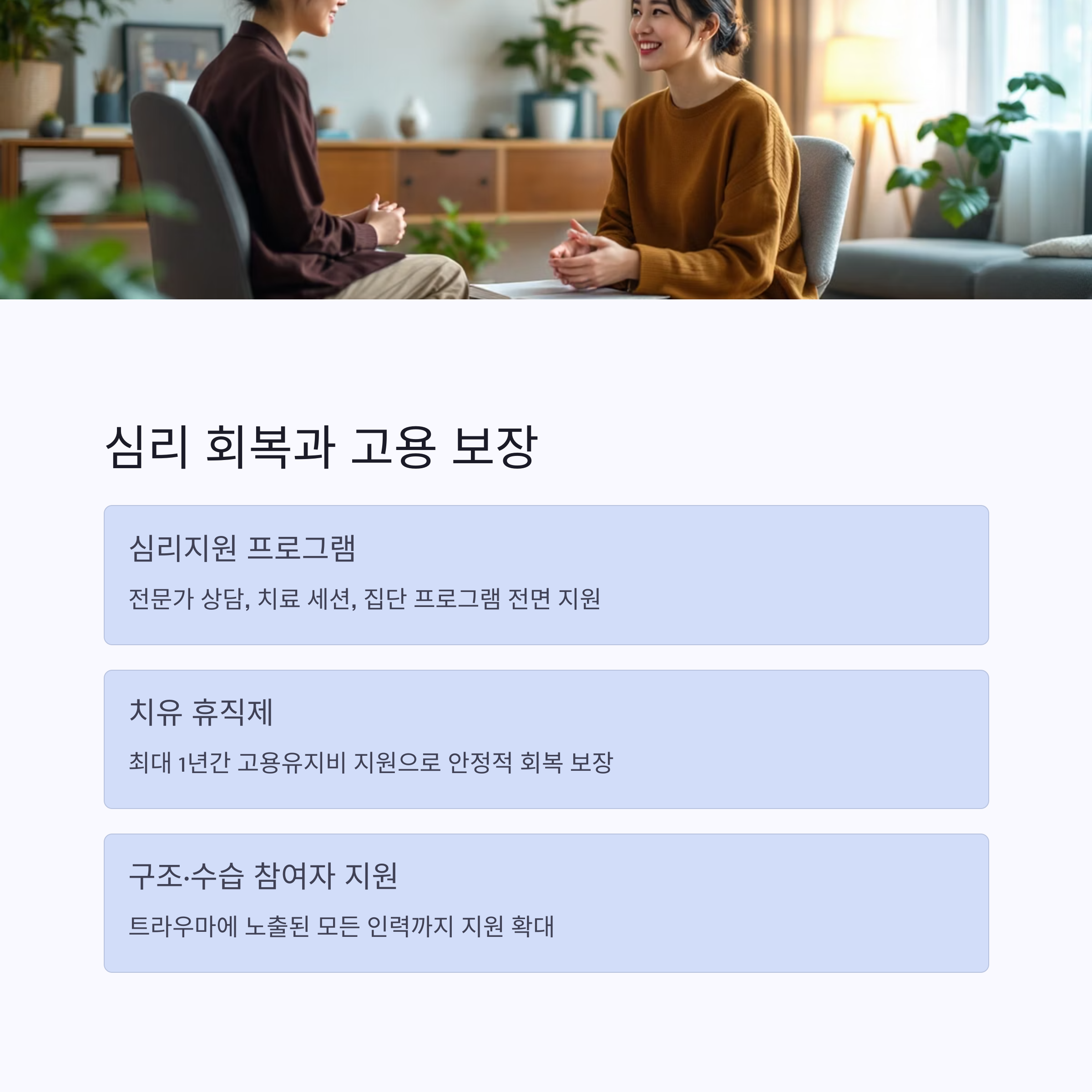 - 심리 치료 지원과 휴직 제도 활용 방법