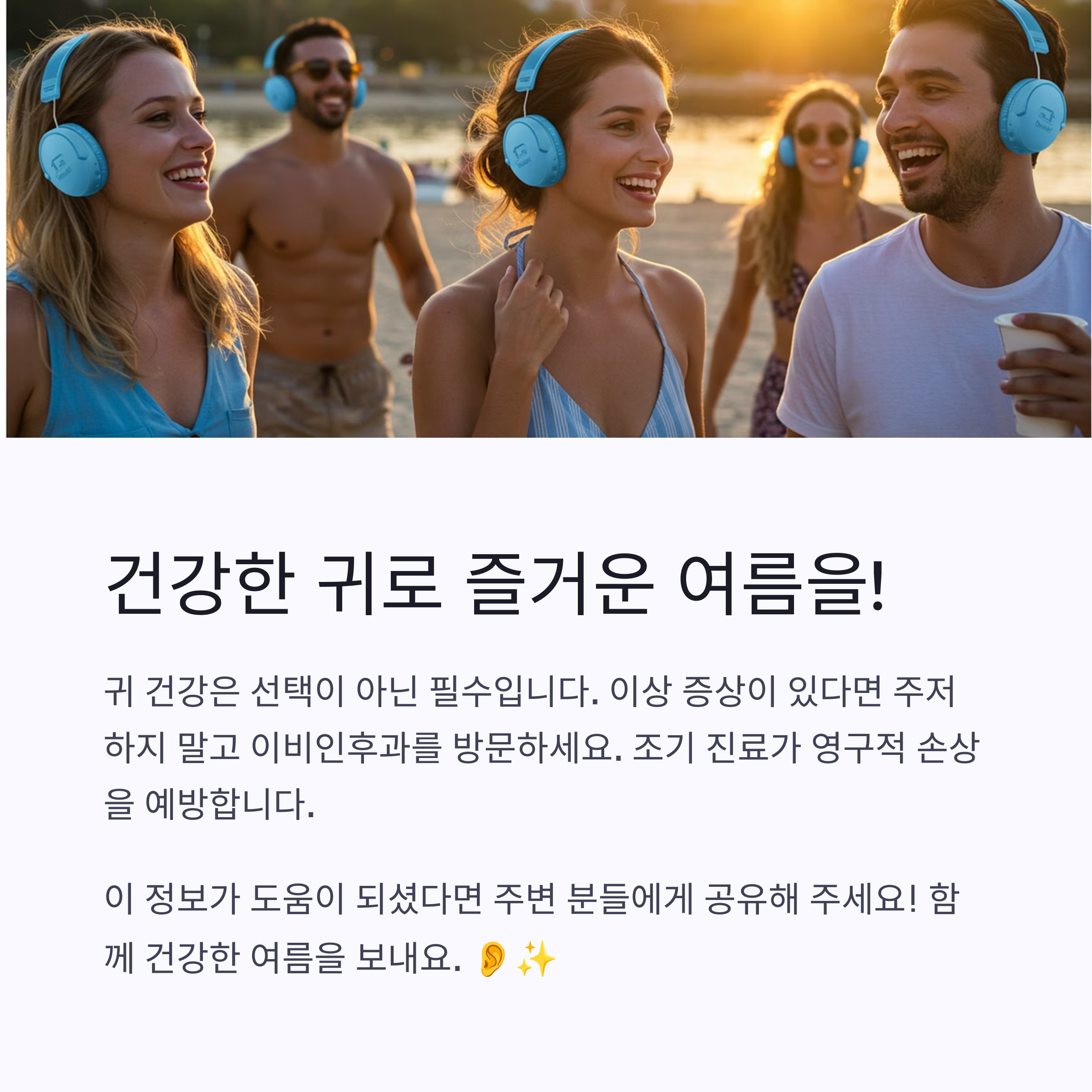 - 우리 모두 건강한 귀로 시원하고 즐거운 여름 보내시길 바랍니다!