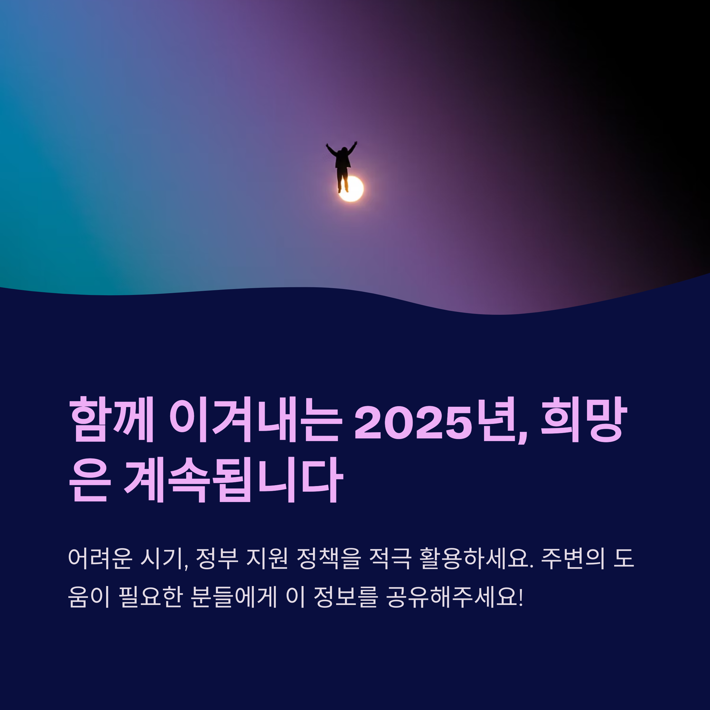 - 하지만 정부가 긴급지원금, 생계급여 인상, 그리고 맞춤형 복지정책을 대폭 확대하며 든든한 보호막을 제공하고 있다는 점을 기억해주세요.