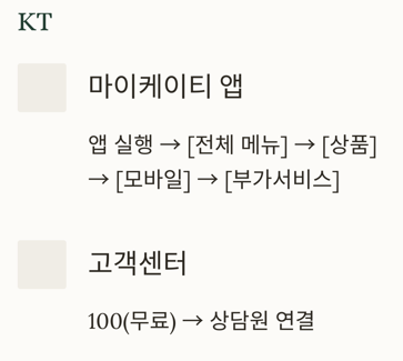 - 마이케이티 앱 내 예약 서비스