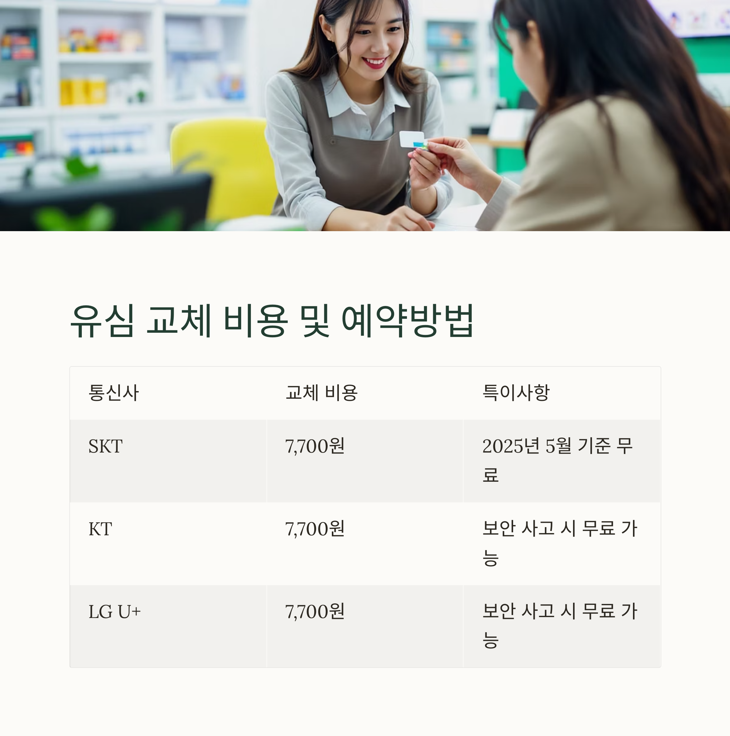 통신사 유심 교체 비용 특이사항