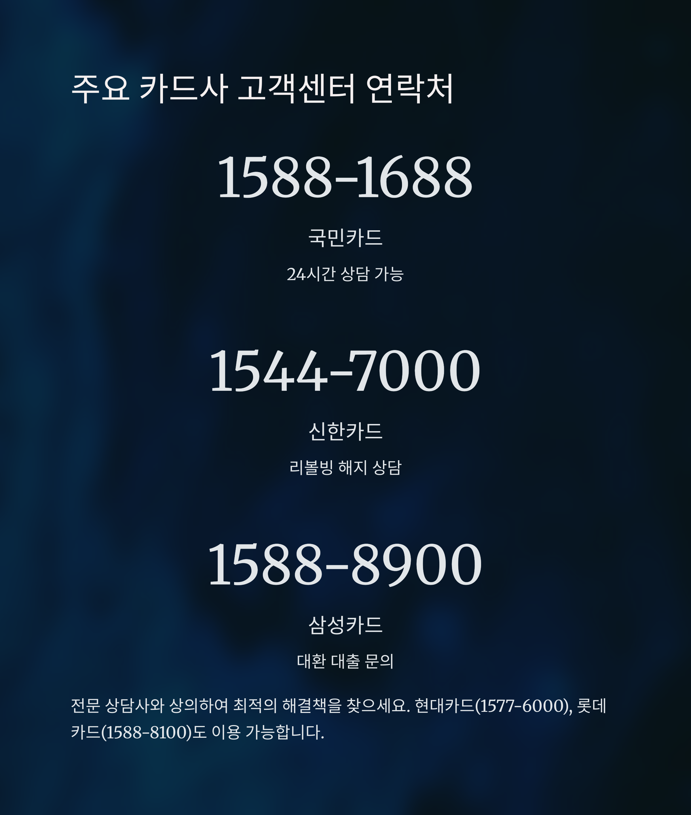 주요 카드사 고객센터 연락처