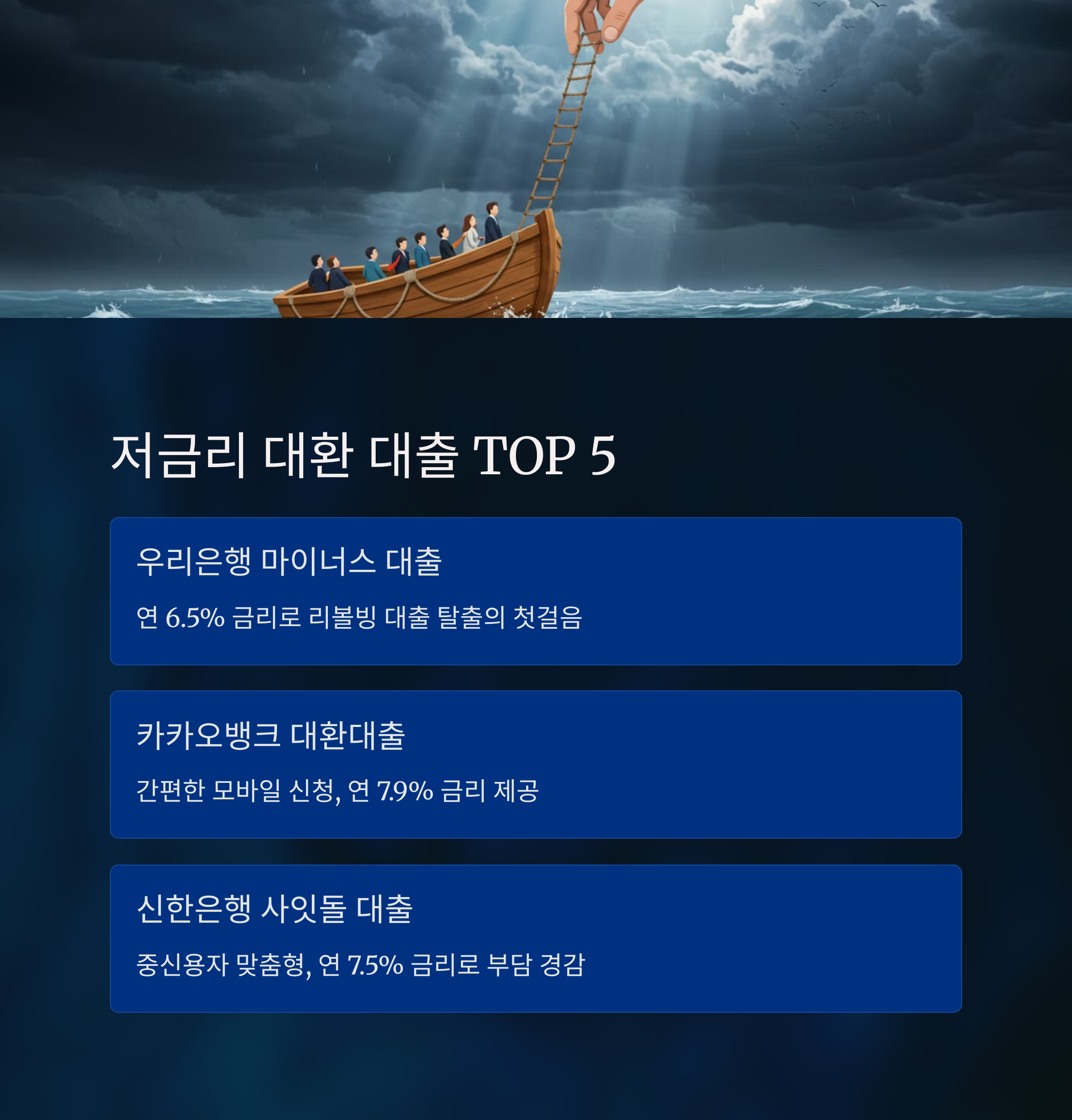 저금리 대환 대출 취급점 TOP 5
