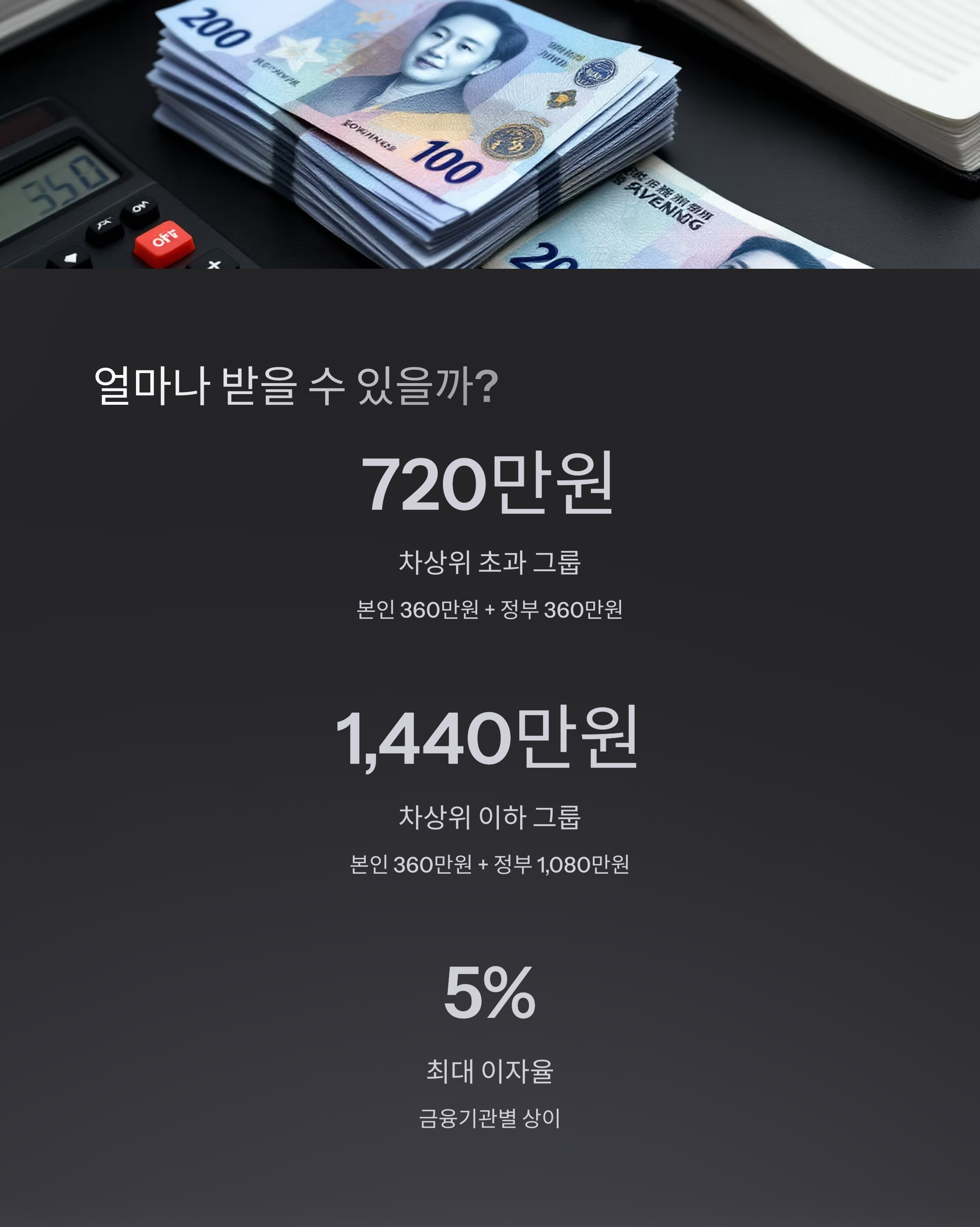 • 정부 지원: 월 10만원 × 36개월 = 360만원