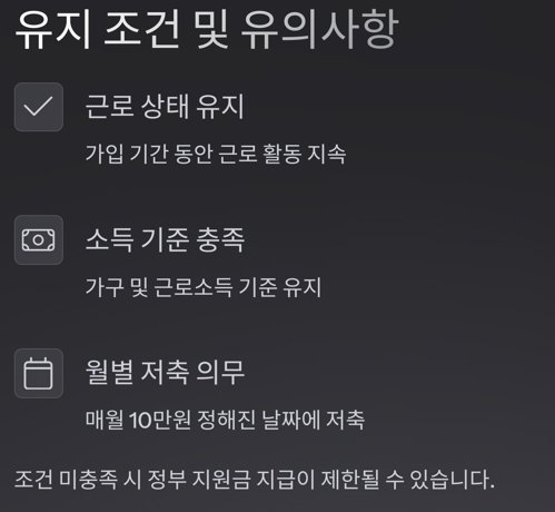 조건 미충족 시 정부 지원금 지급이 제한될 수 있으니, 가입 조건을 꾸준히 유지하는 것이 중요합니다.