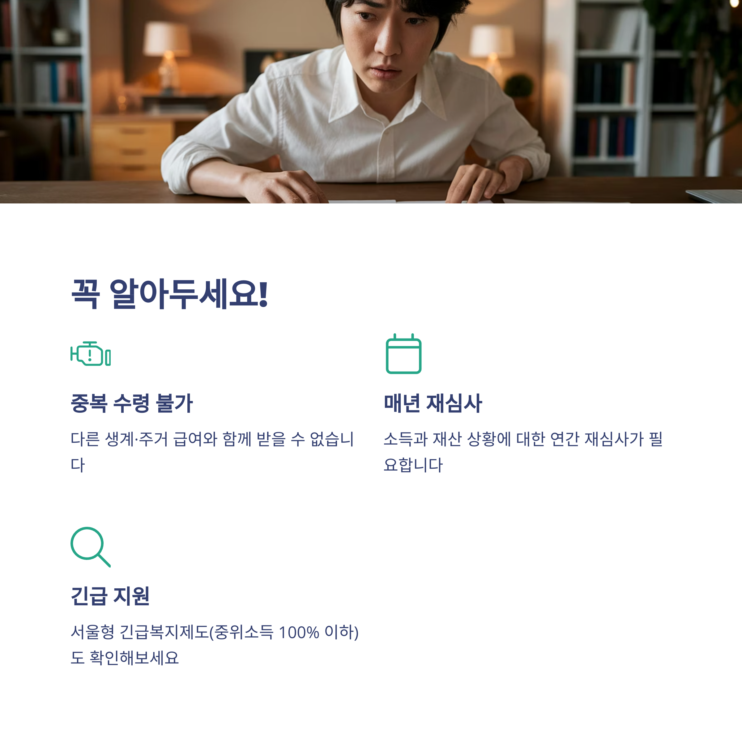 - 서울형 긴급복지: 서울시 거주자 대상 추가 지원