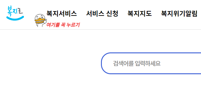 '복지로' 웹사이트(www.bokjiro.go.kr)에 접속합니다.