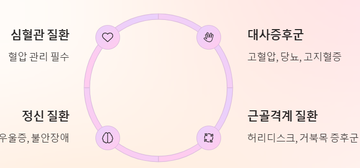 - 대사증후군 (고혈압, 당뇨, 고지혈증)